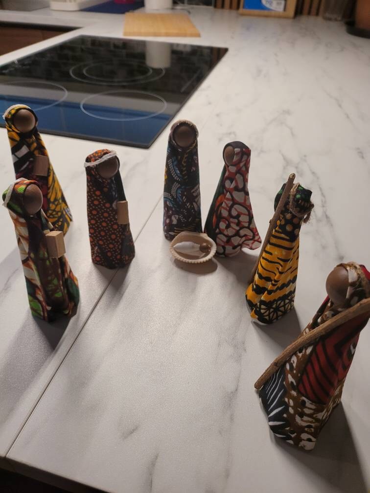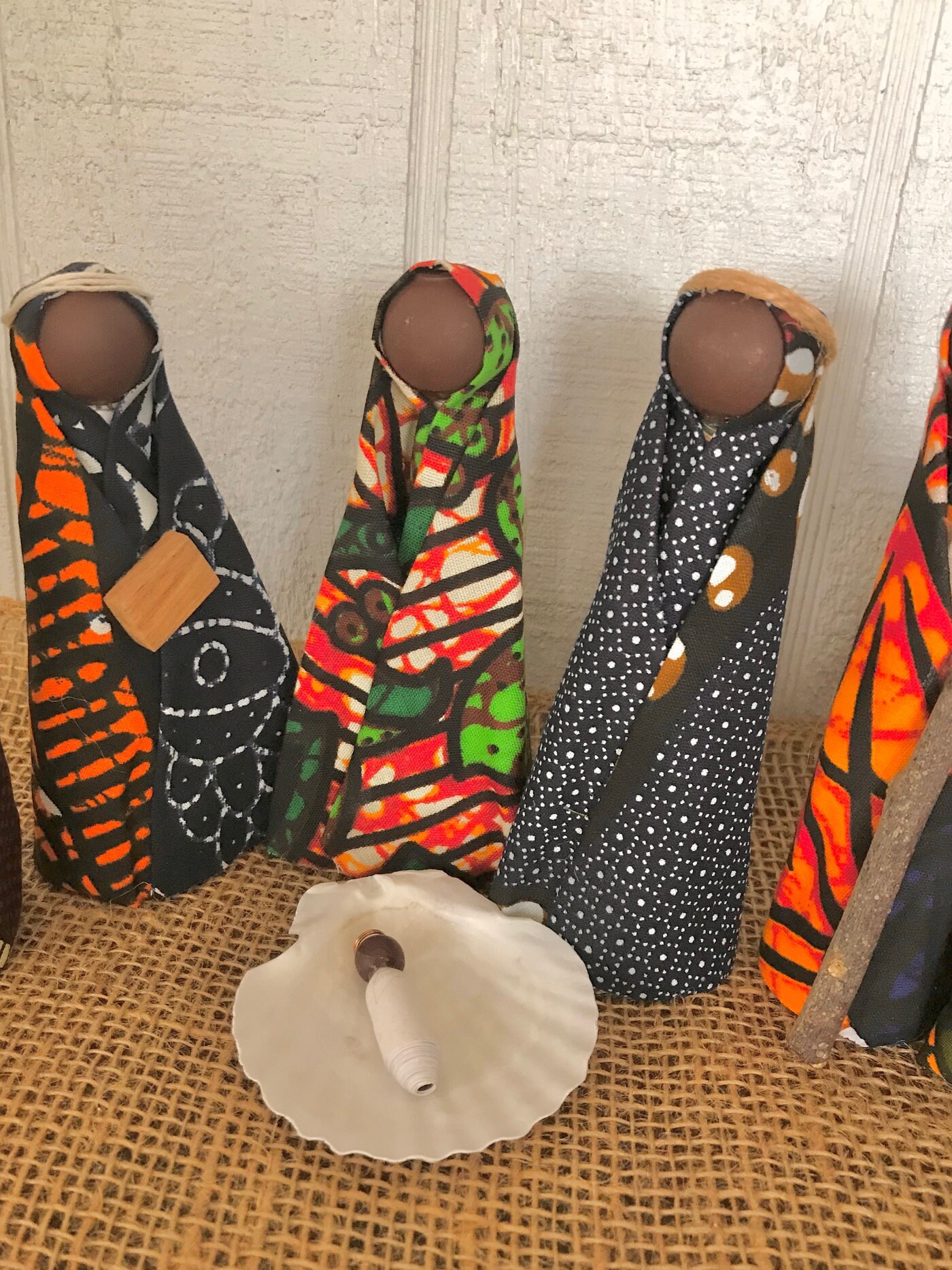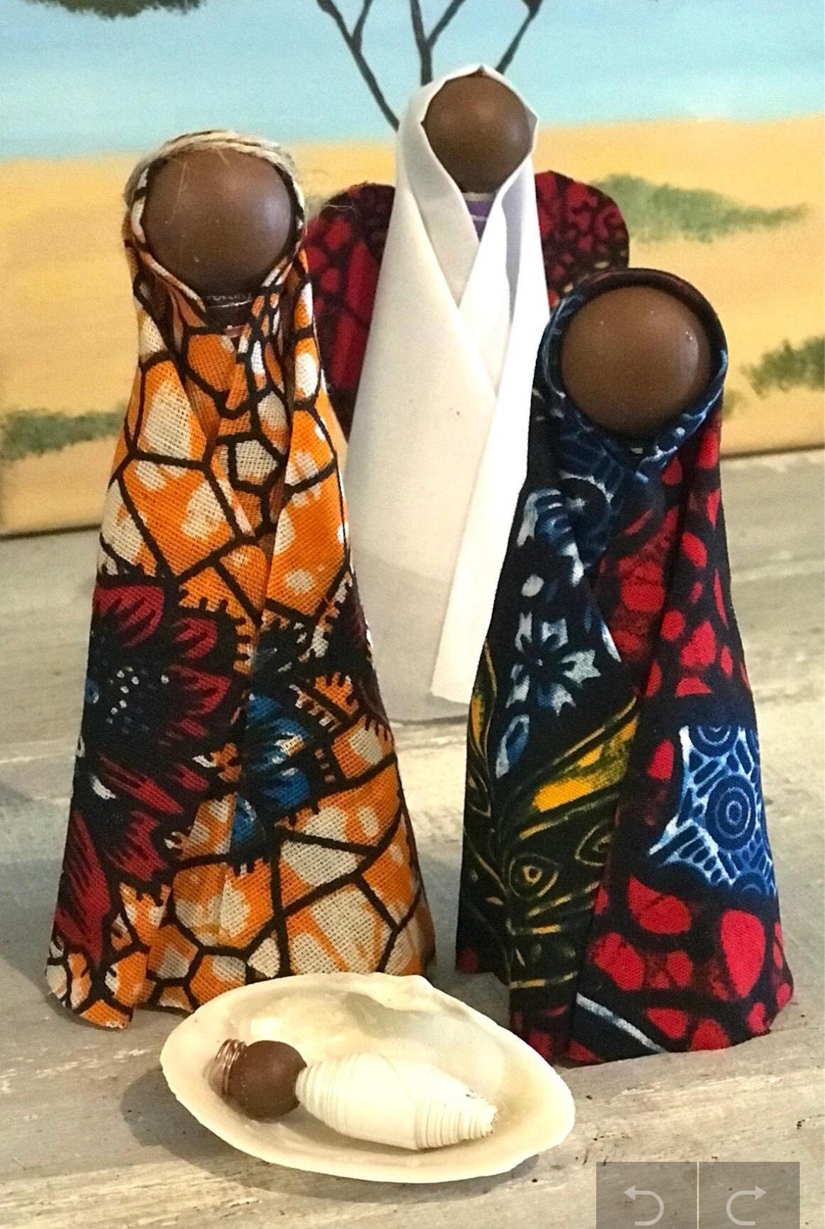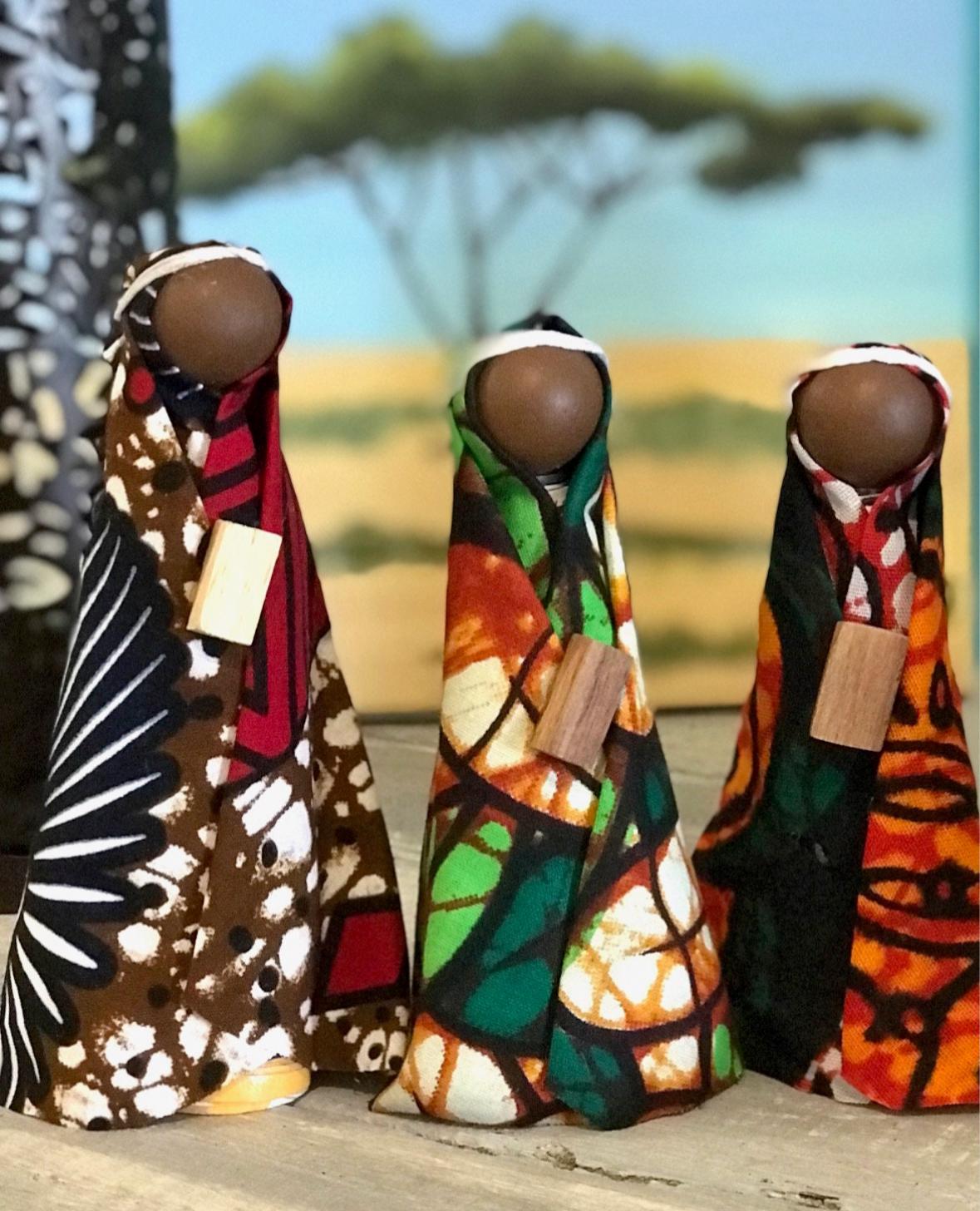 The unique colorful kitenge cloth adds a personal touch to each figure. No two nativity sets are exactly alike. Each figure a unique fabric.