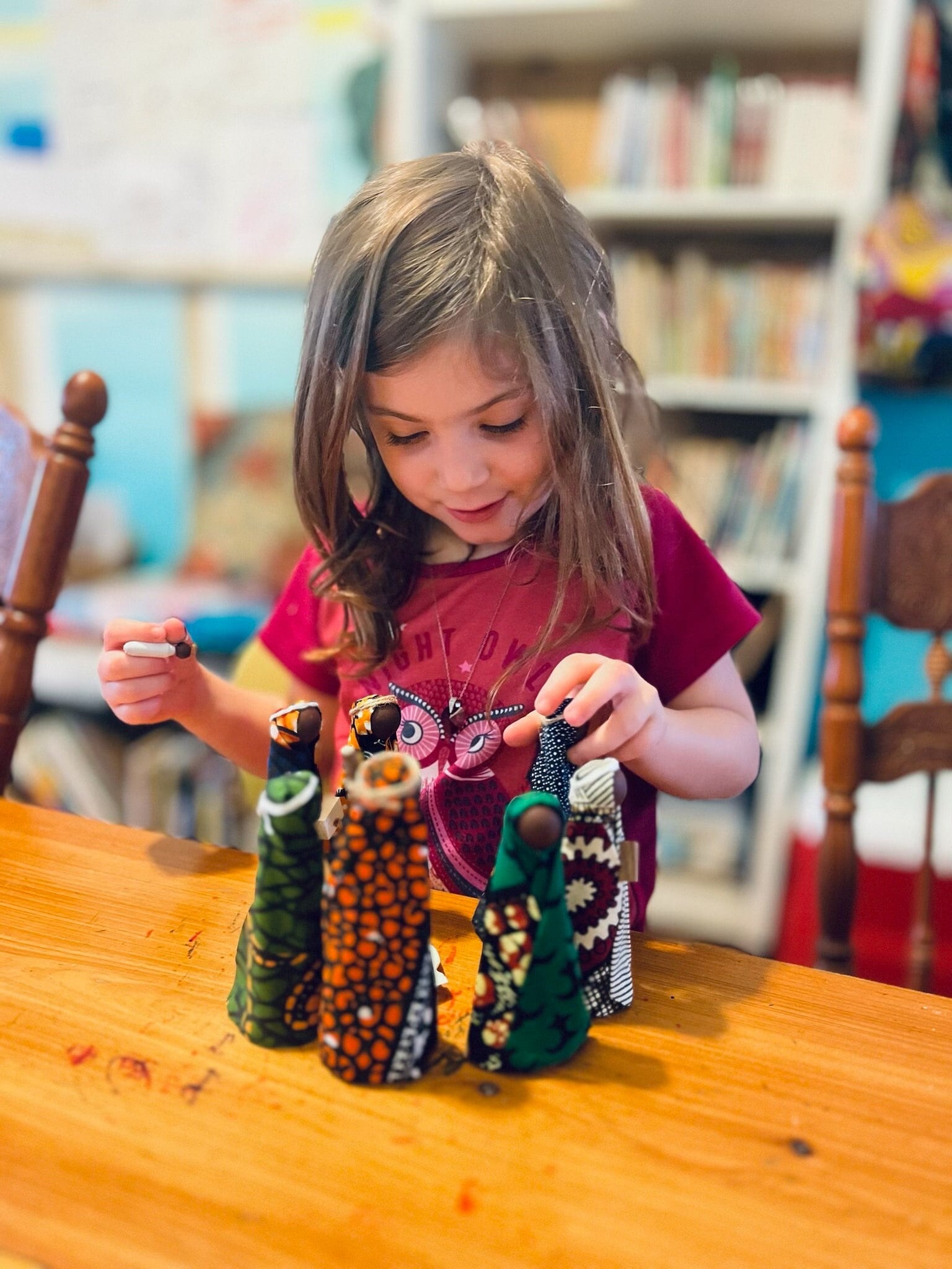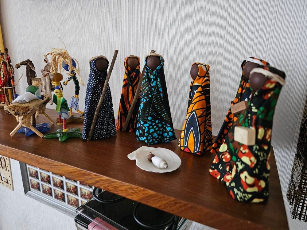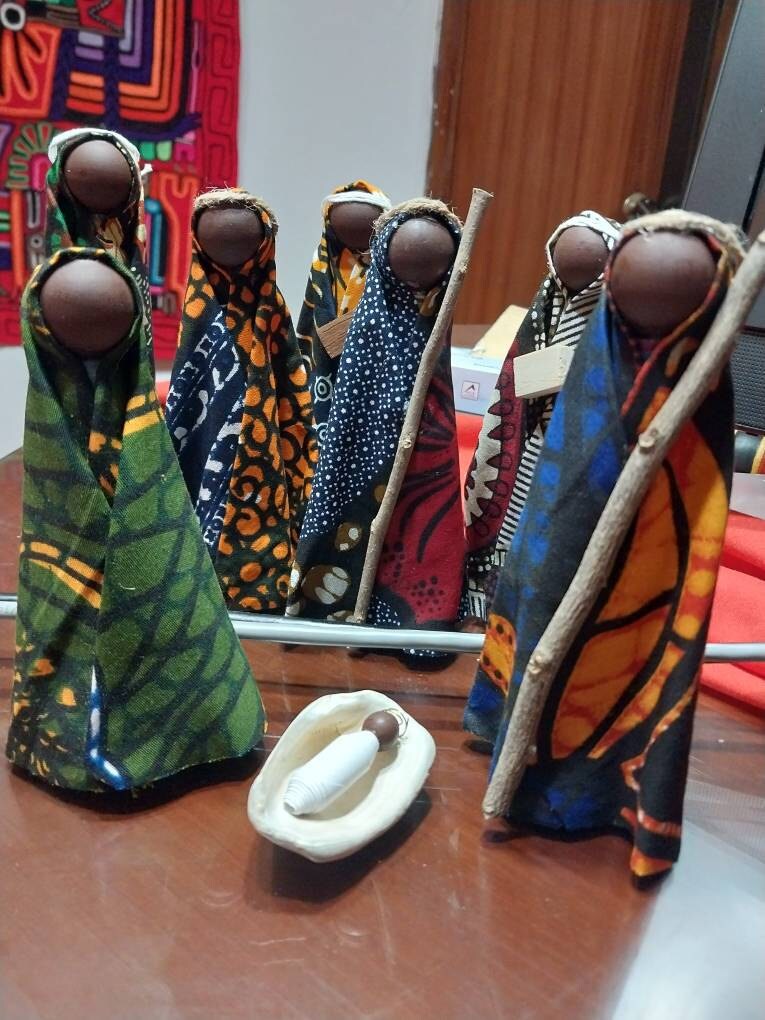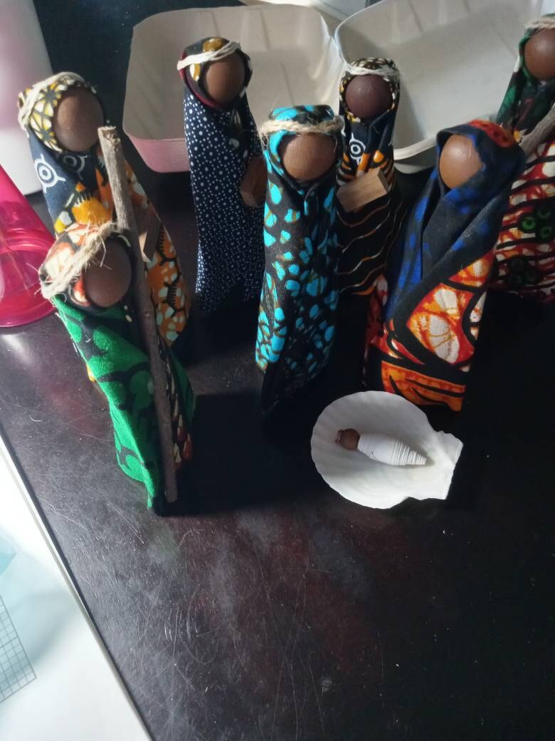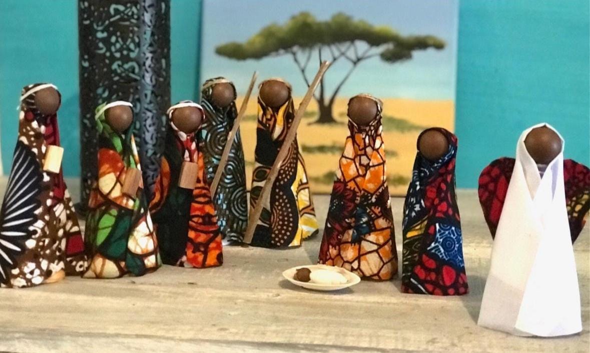 The unique colorful kitenge cloth adds a personal touch to each figure. No two nativity sets are exactly alike. Each figure a unique fabric.