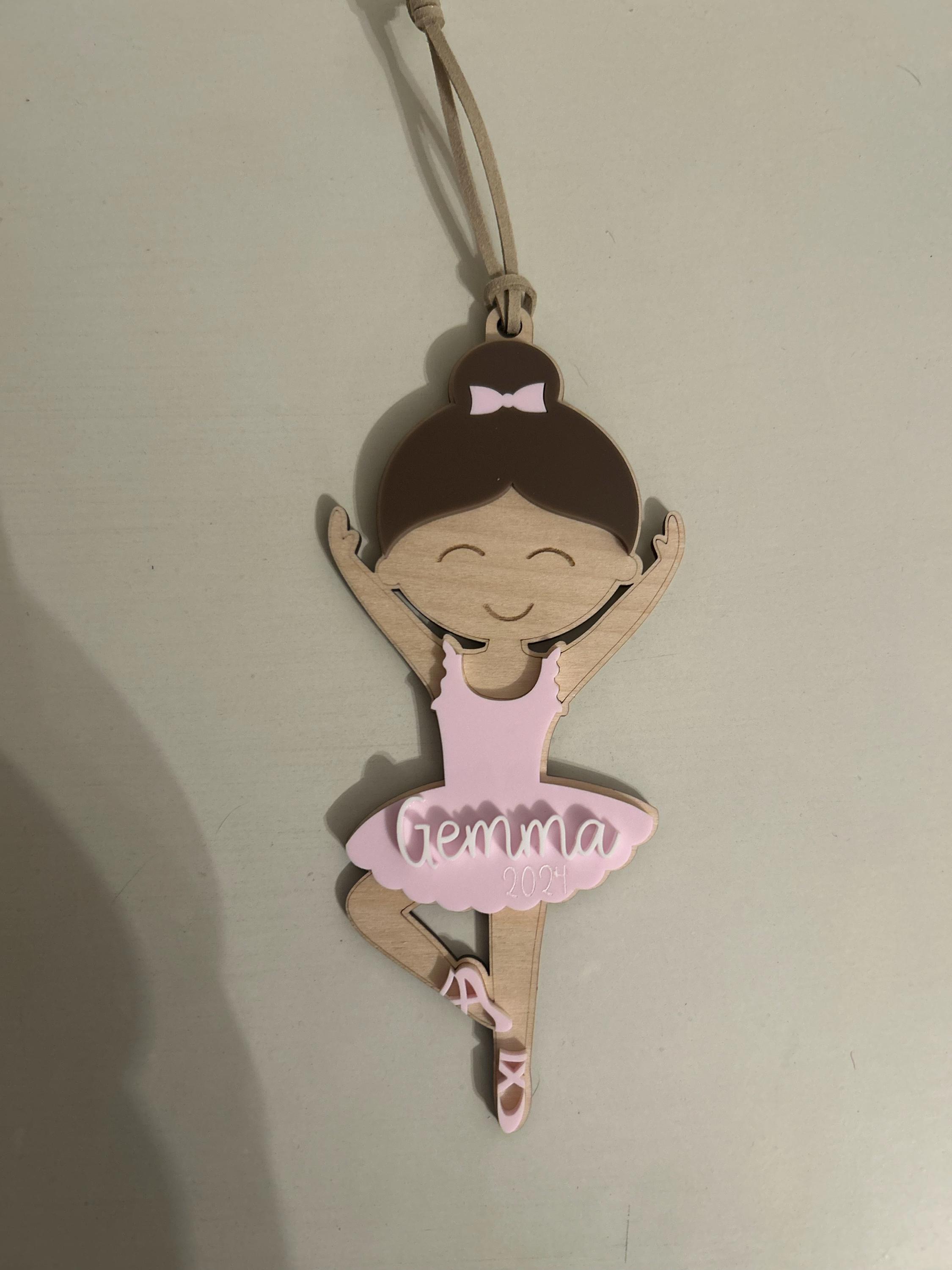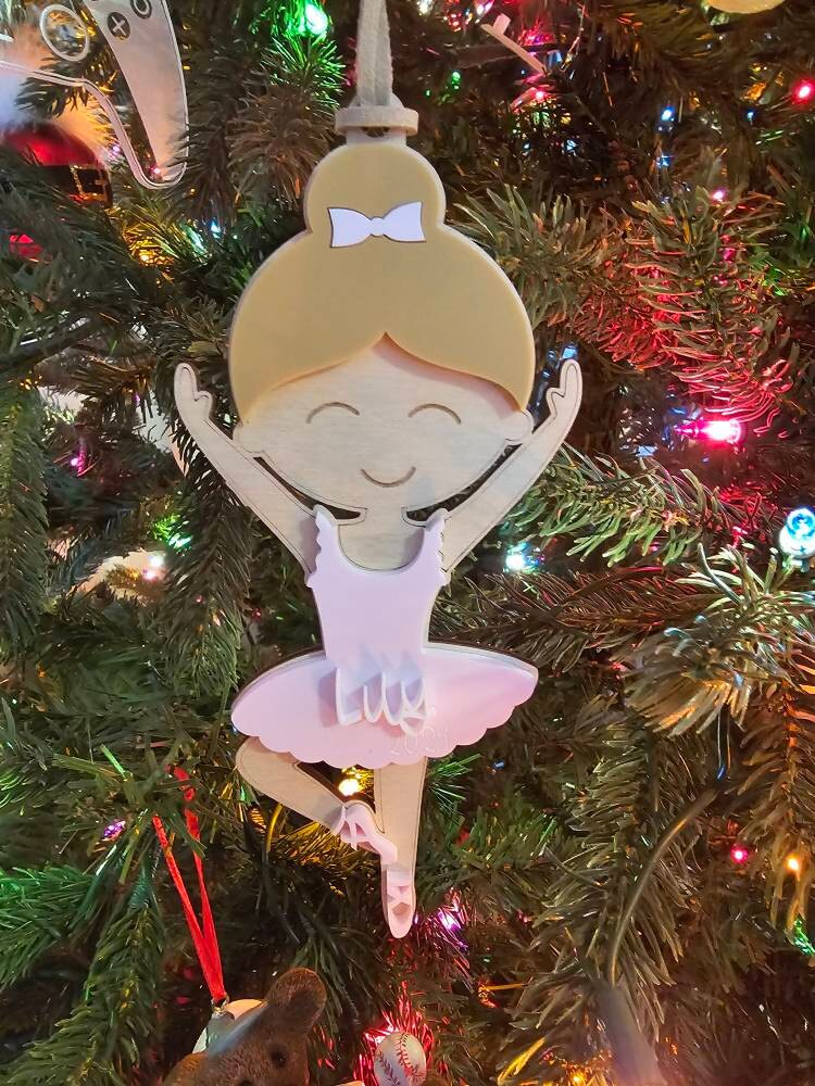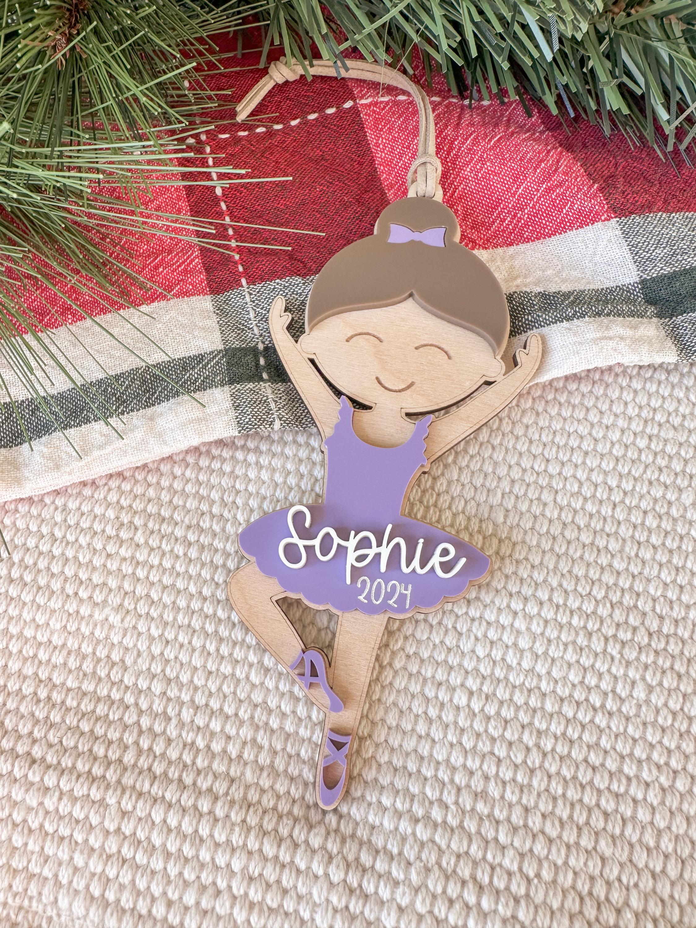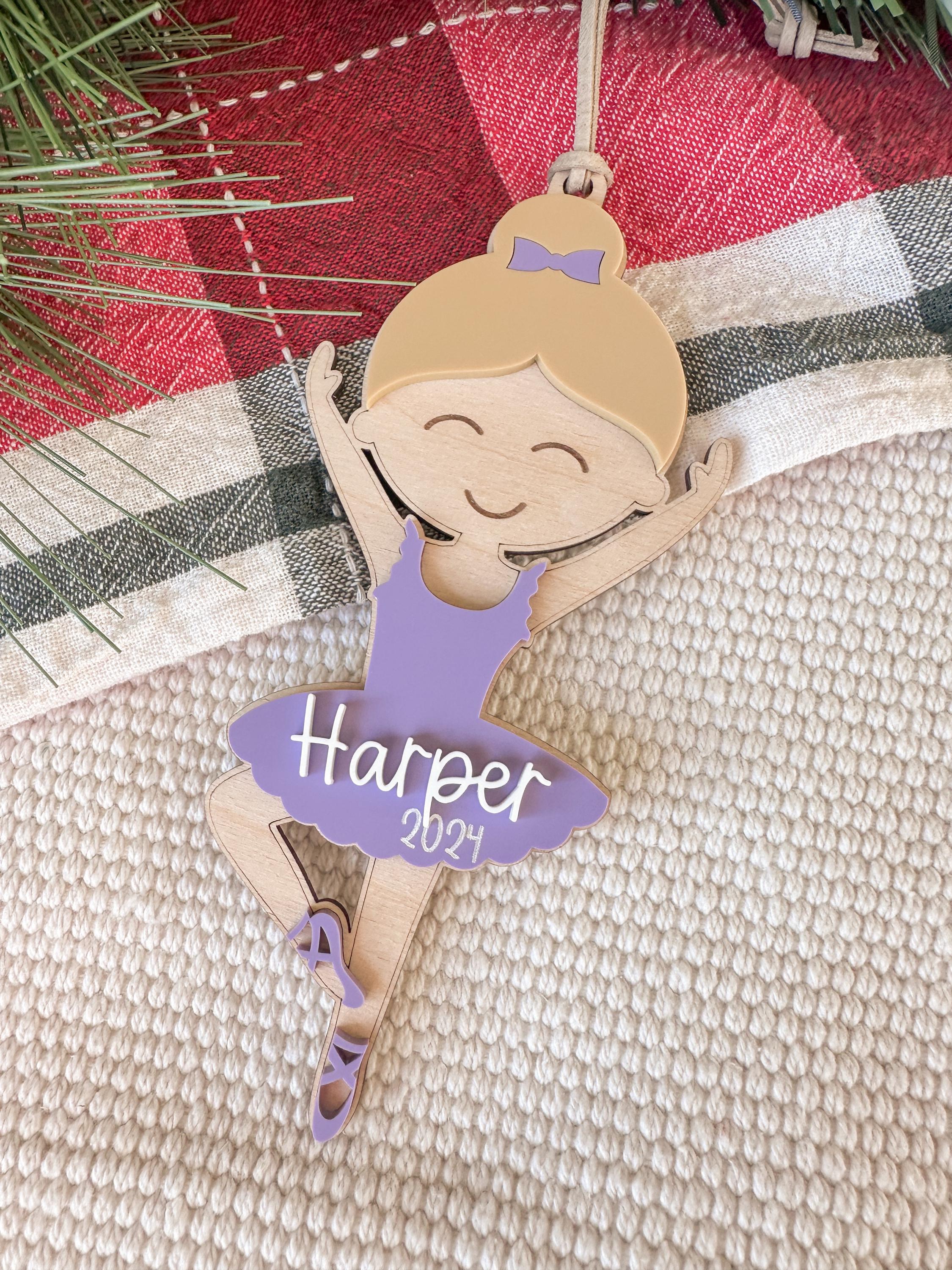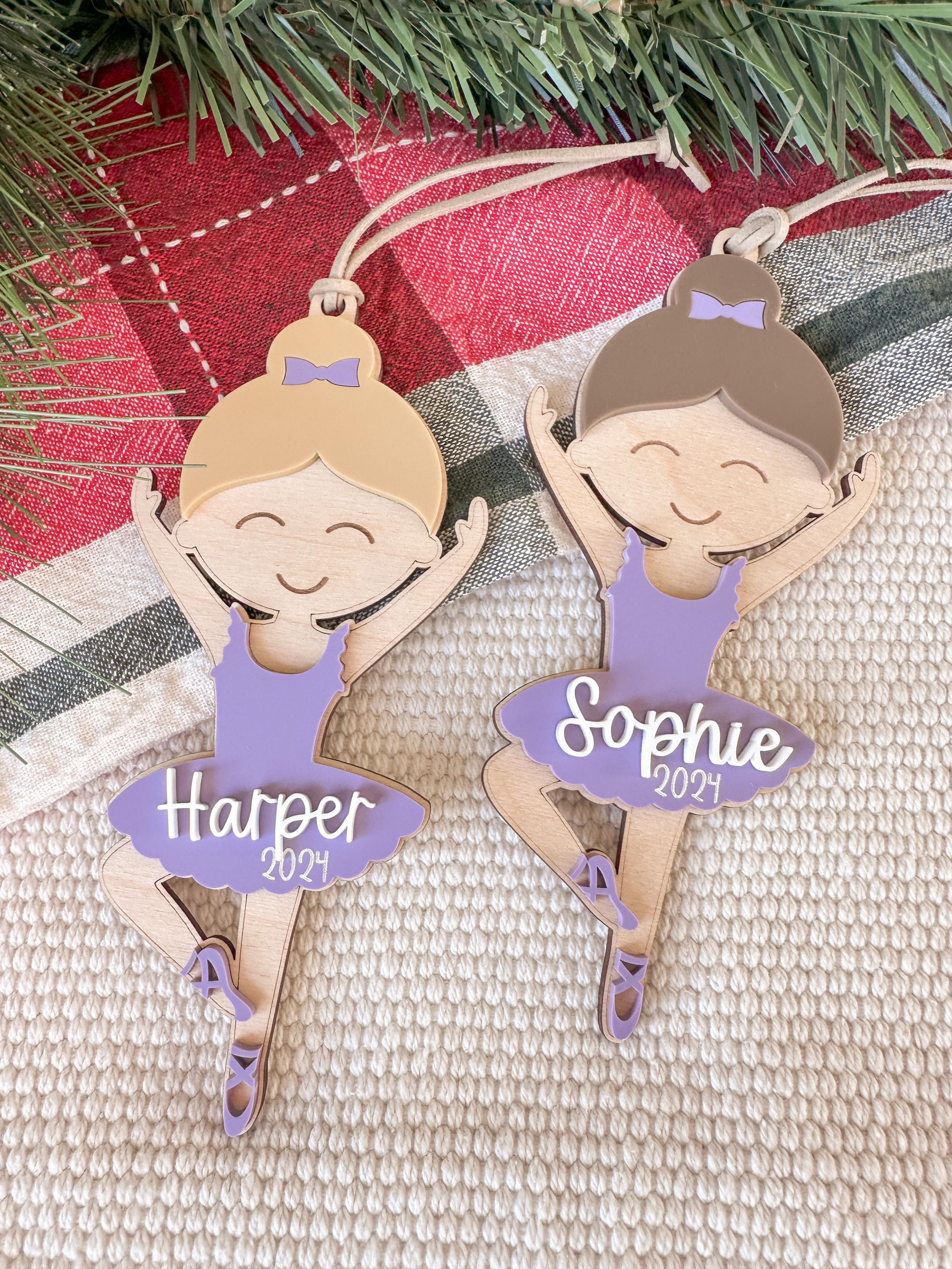 This charming ballerina ornament is the perfect gift for dance lovers! Crafted from high-quality wood and acrylic, each ornament features a delicate dancer with your choice of blonde or brunette hair and a pink or purple tutu. Best of all, you can personalize it with your little ballerina’s name, making it a truly special keepsake. Whether hanging on your Christmas tree or displayed year-round, this ornament adds a graceful, personalized touch to any space!