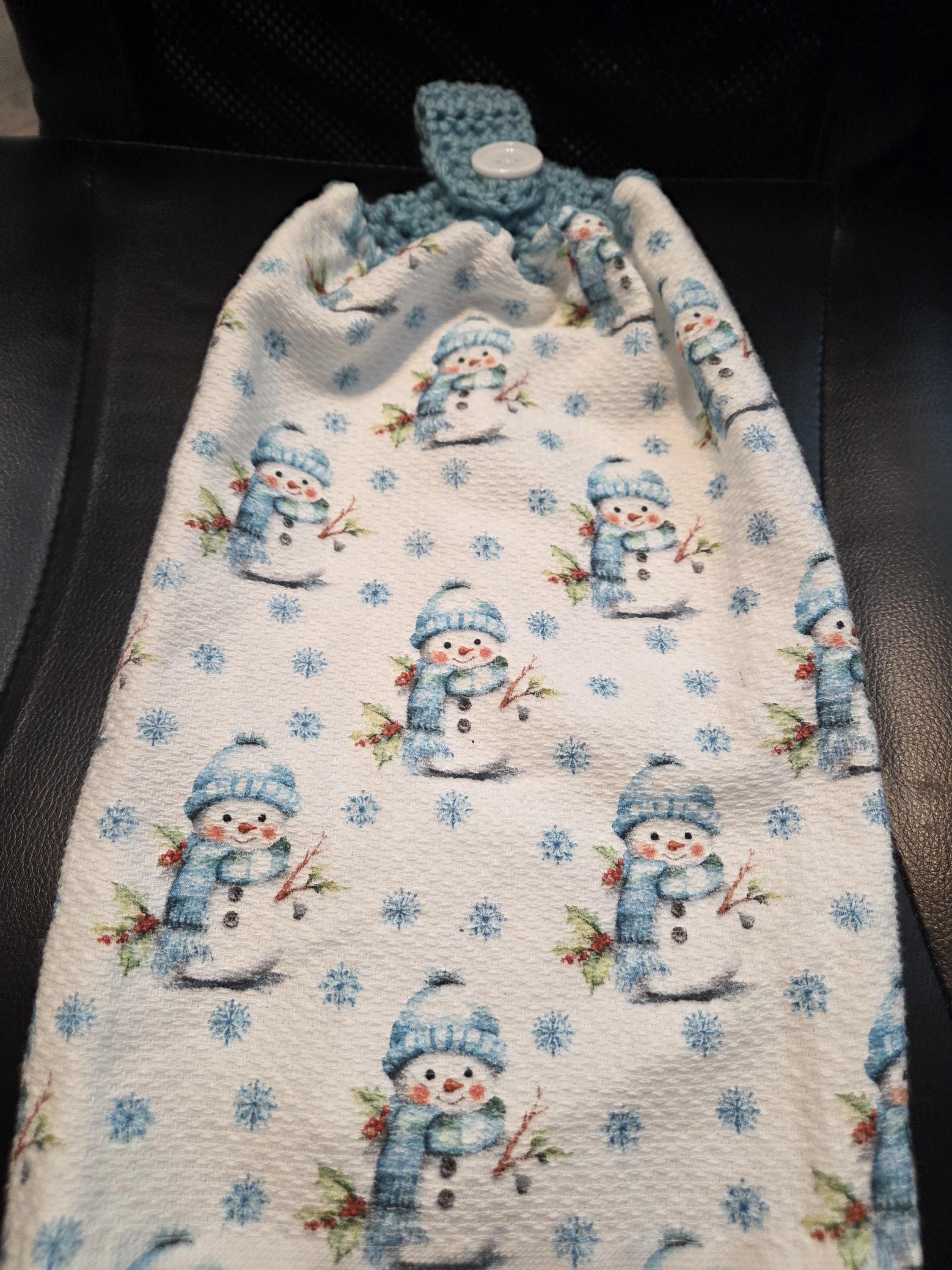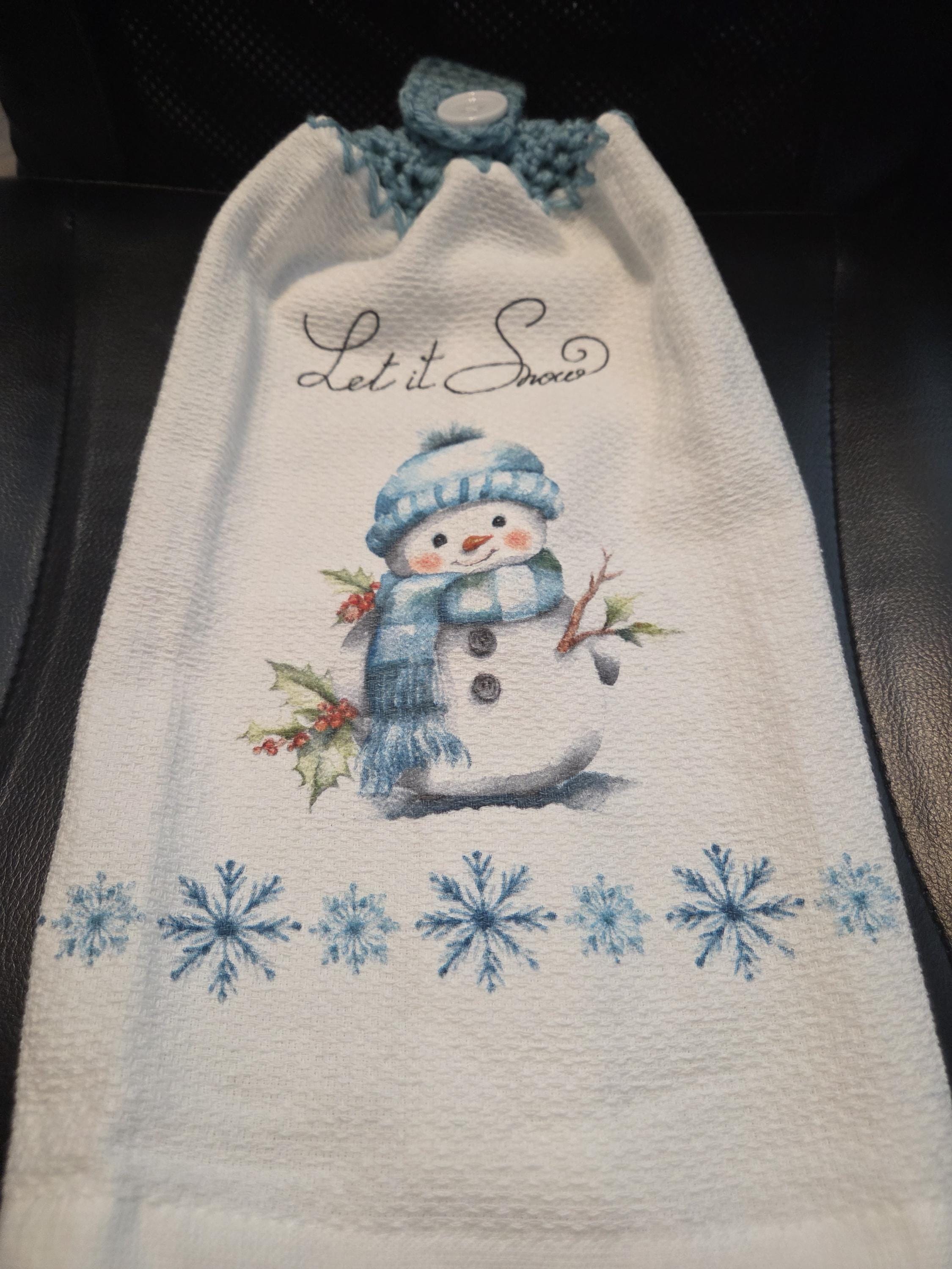 Snowman hanging kitchen hand towels crochet top button closure NEW