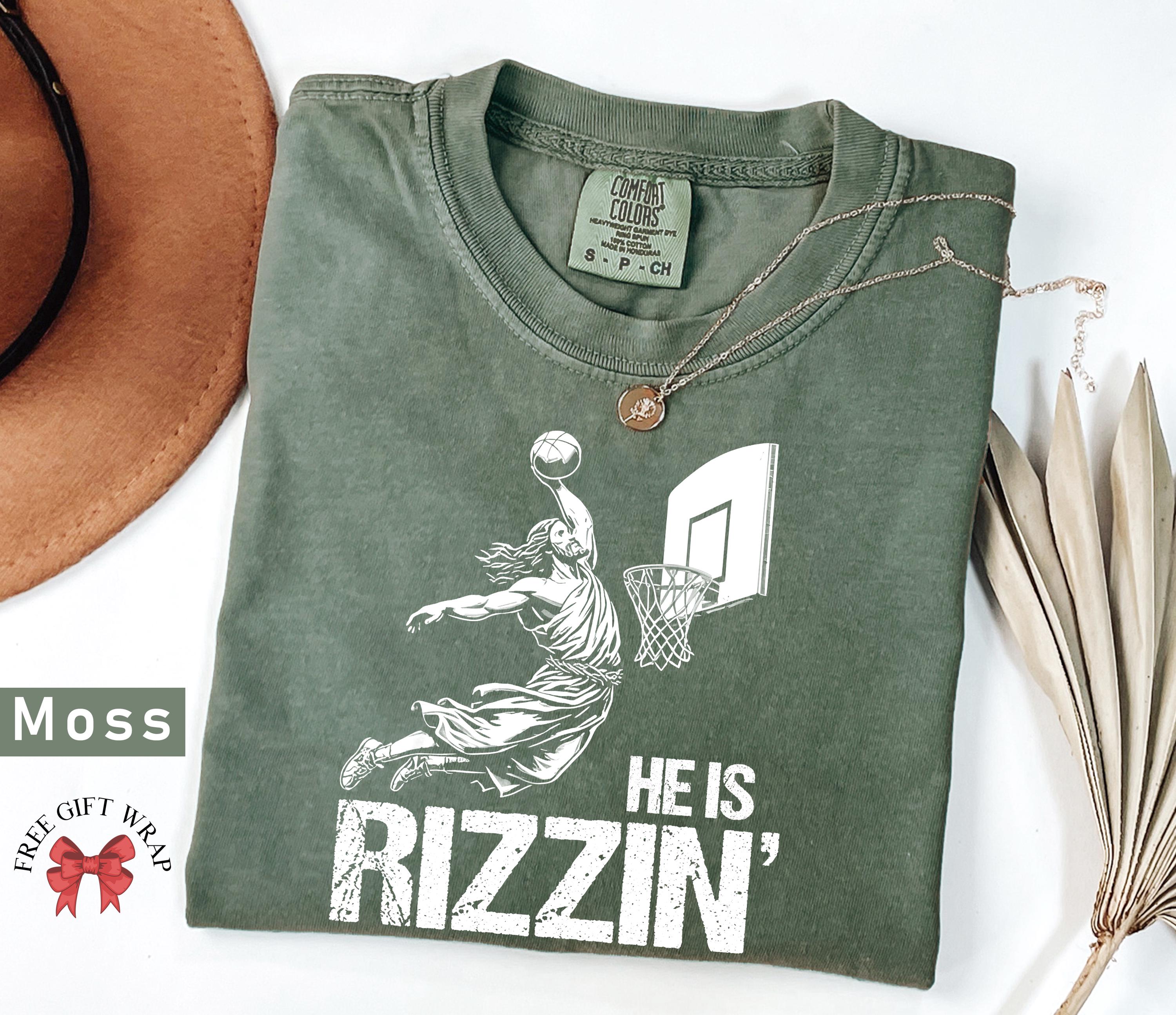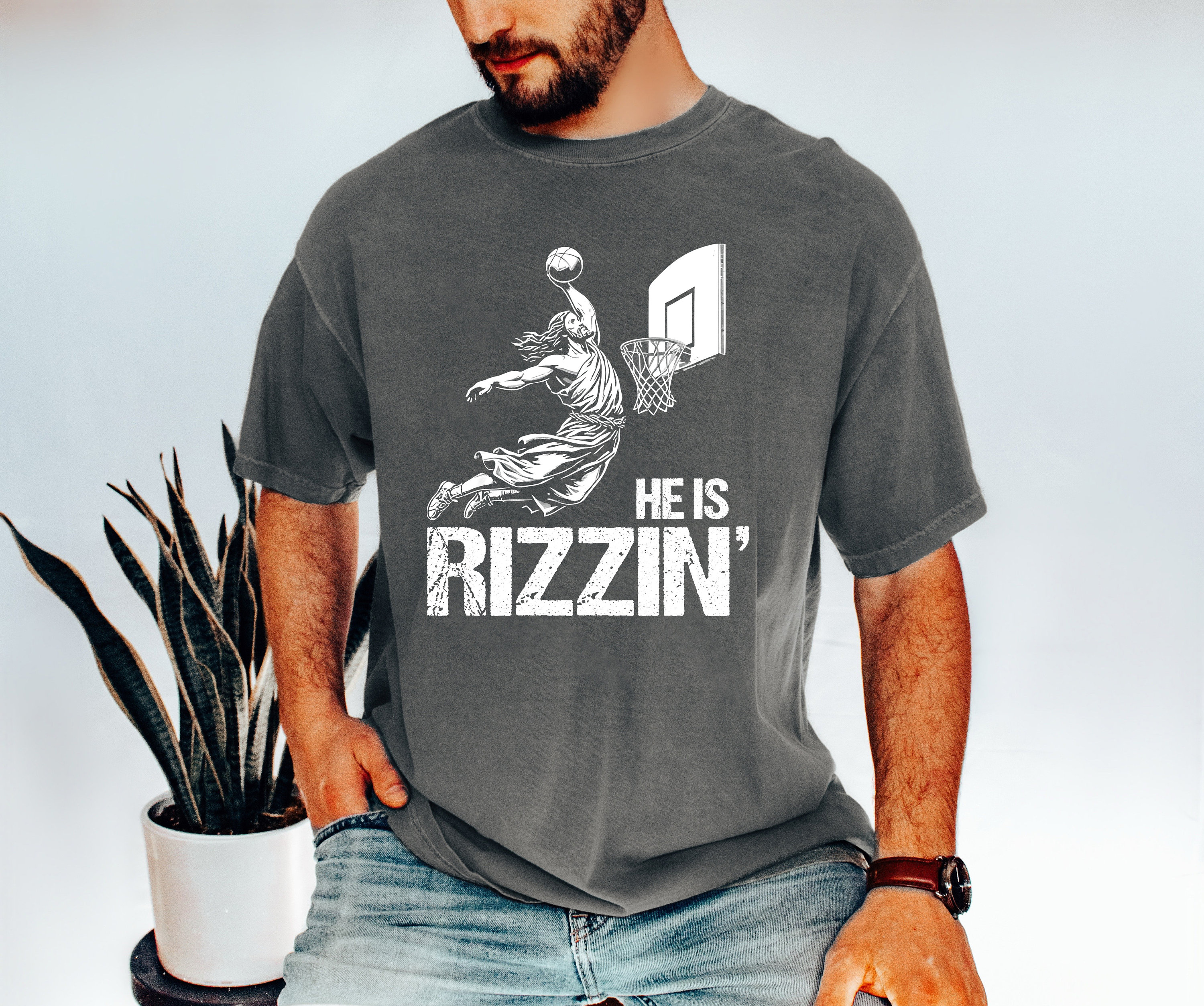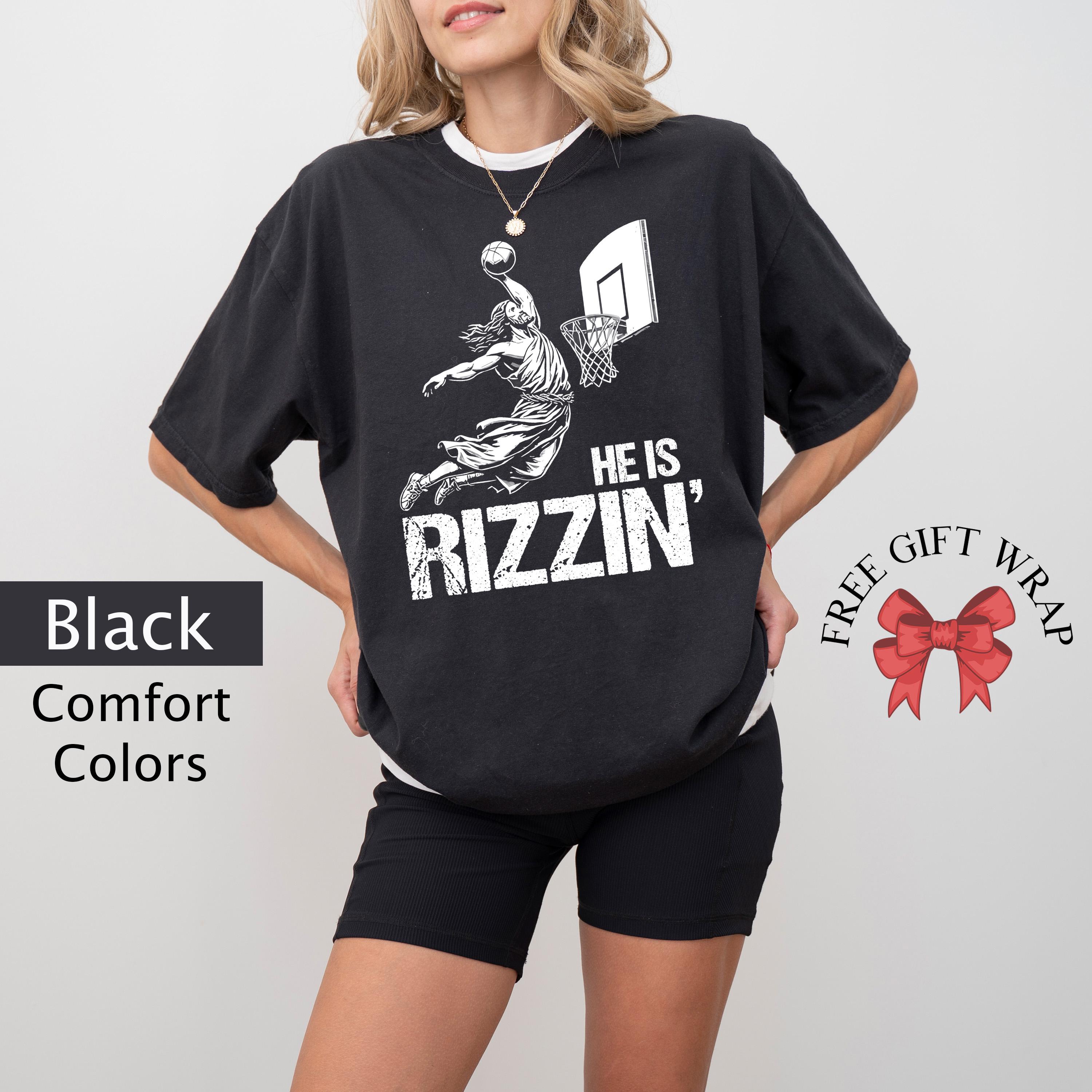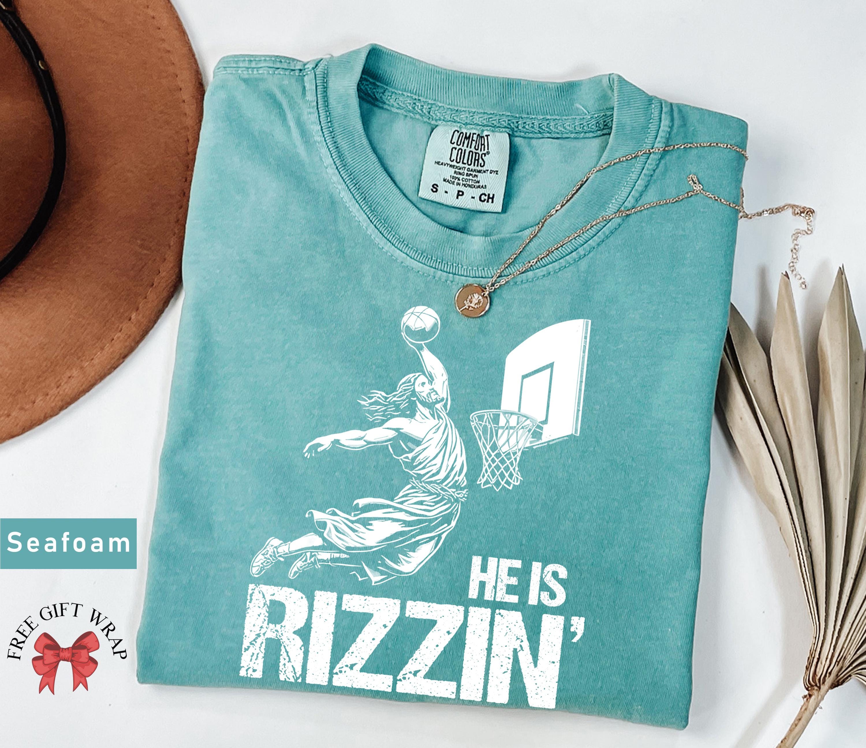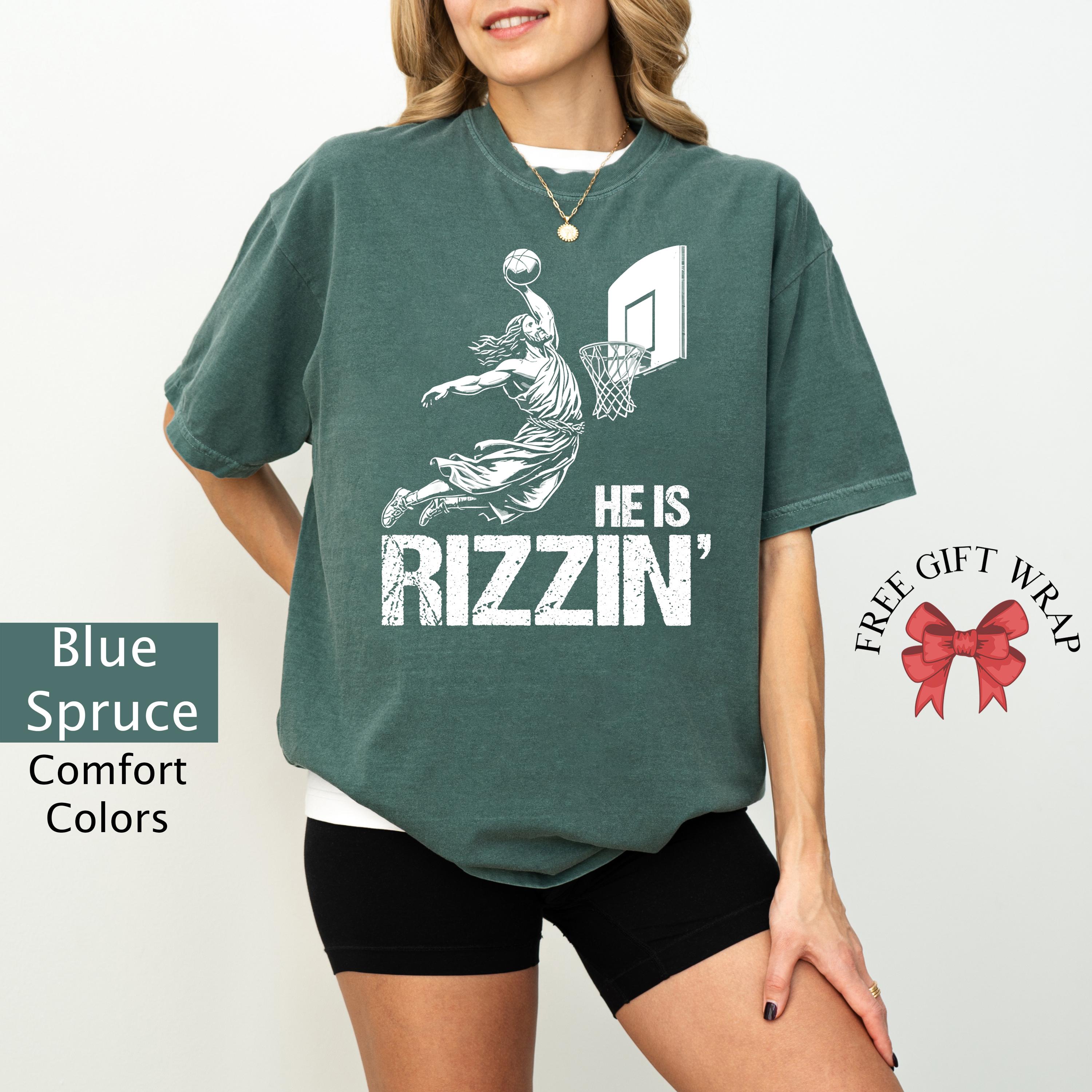 Comfort Colors He Is Rizzin T-Shirt Jesus Playing Basketball, Trendy Funny Jesus Tee, Vintage Graphic Tee, Adult Humor T-Shirt, Gift For Her
