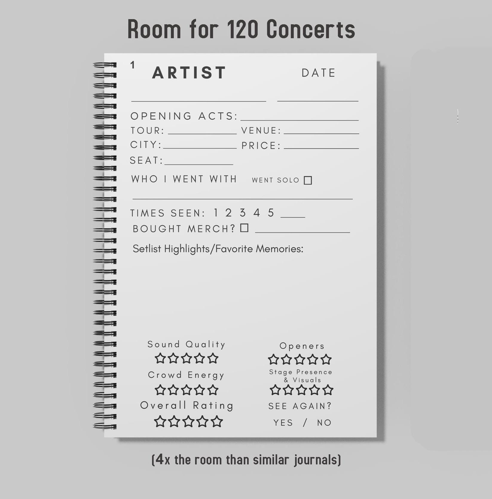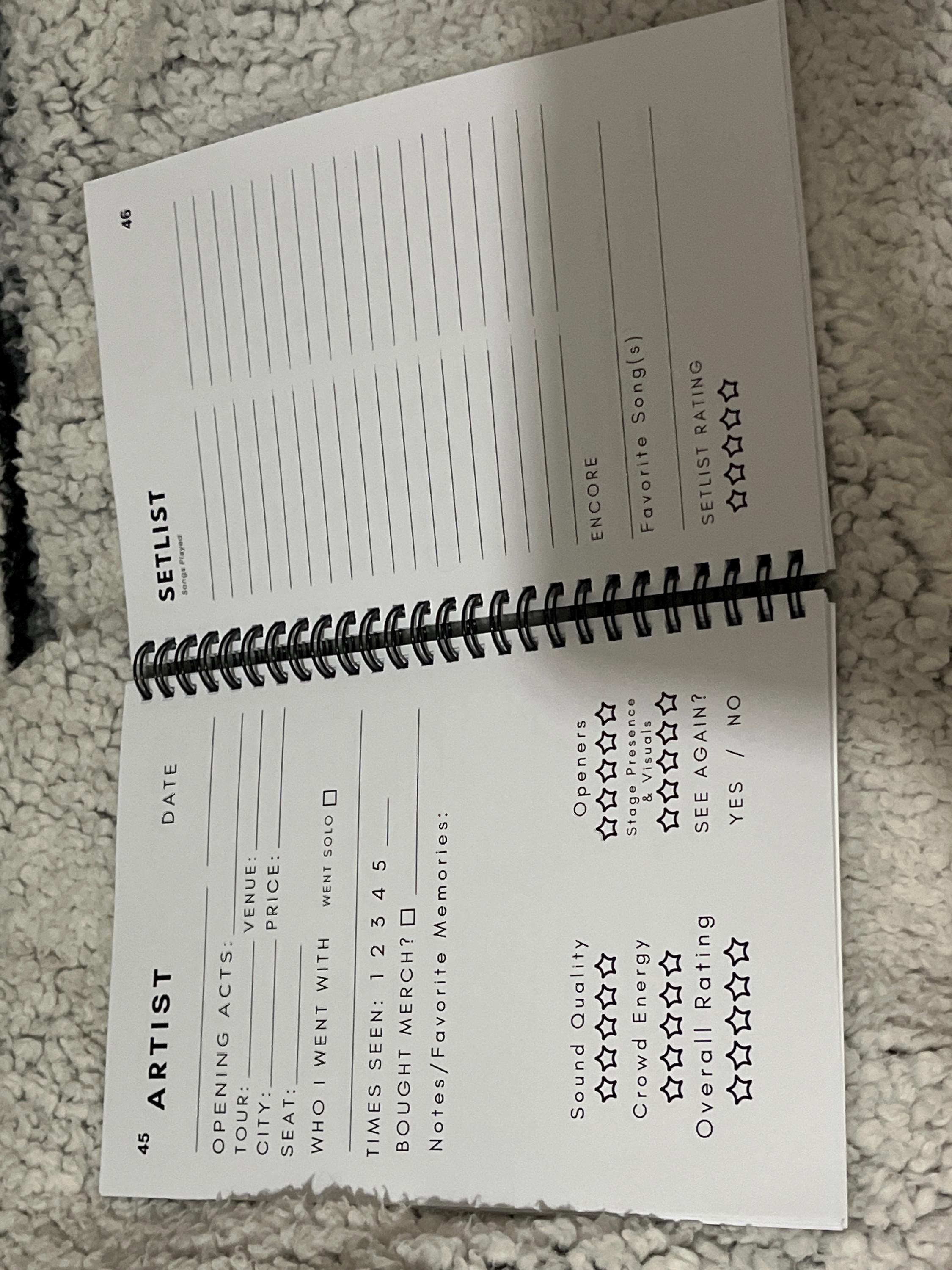 The perfect gift for concert-goers! This journal allows you to write down and remember all of your concerts and functions as a concert keepsake!
