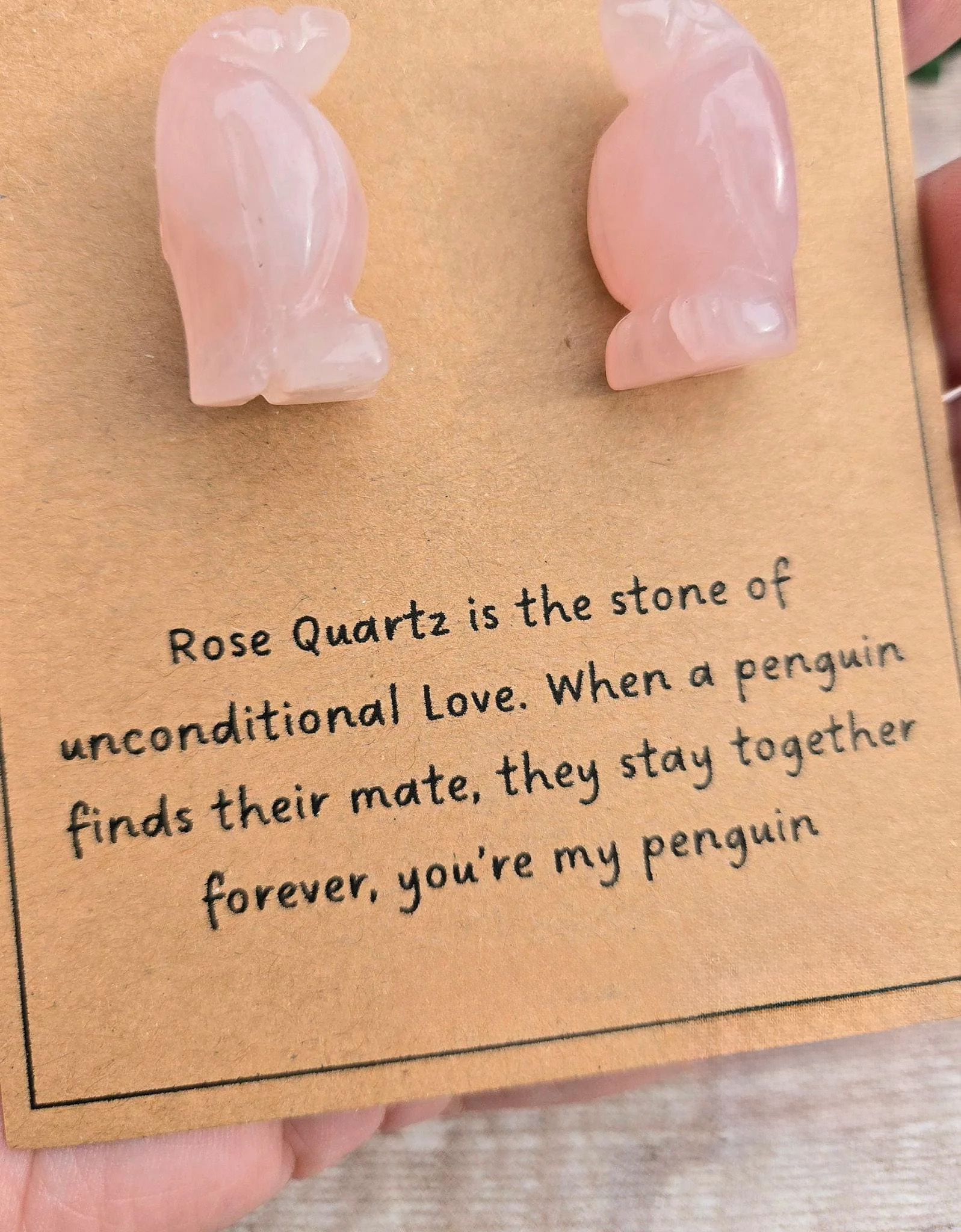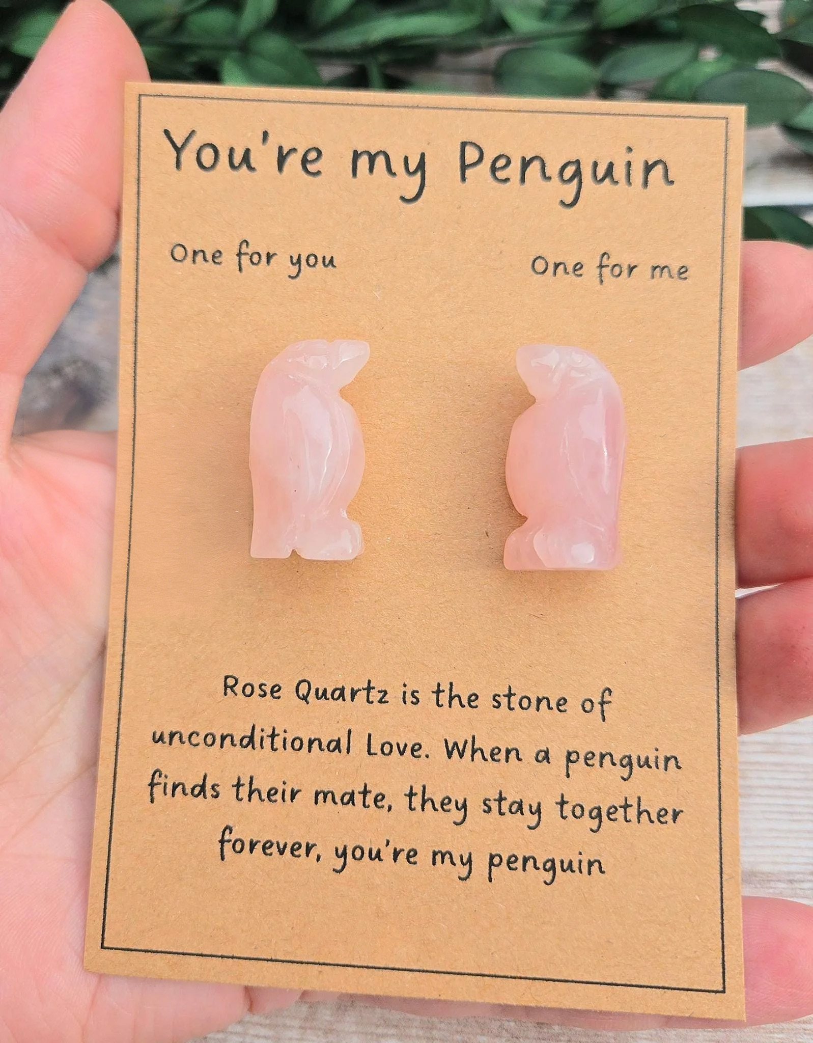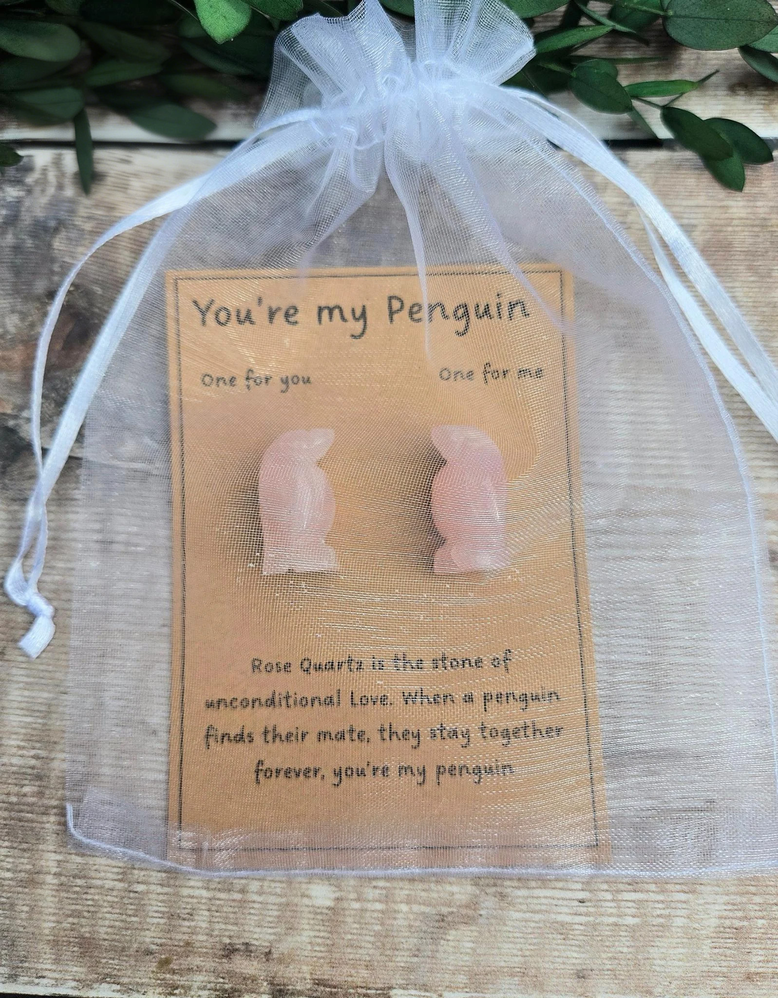 A lovely rose quartz penguin gift for your beloved. My penguin. A perfect gift for your boyfriend, girlfriend, wife, husband, or friend. Unisex set.