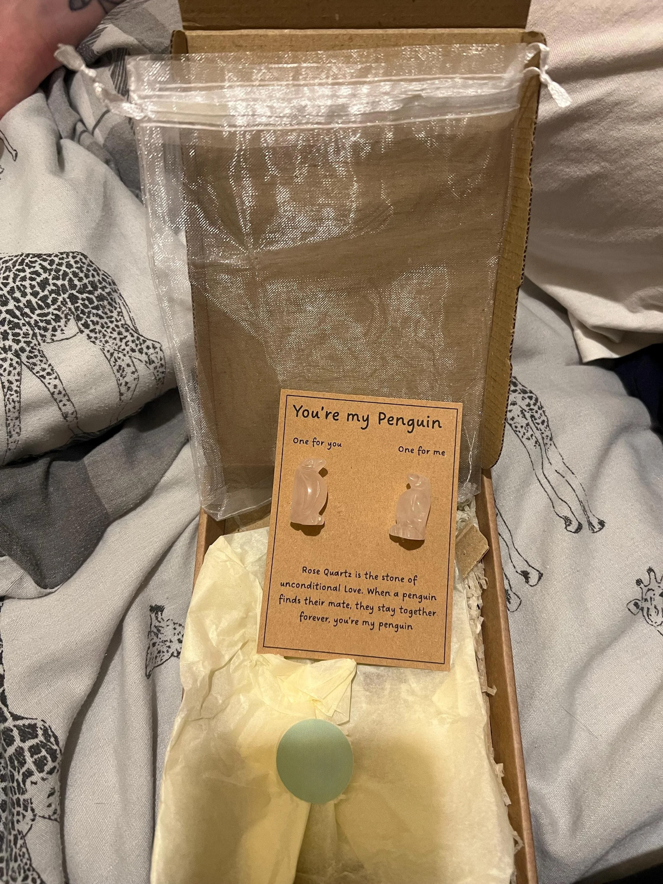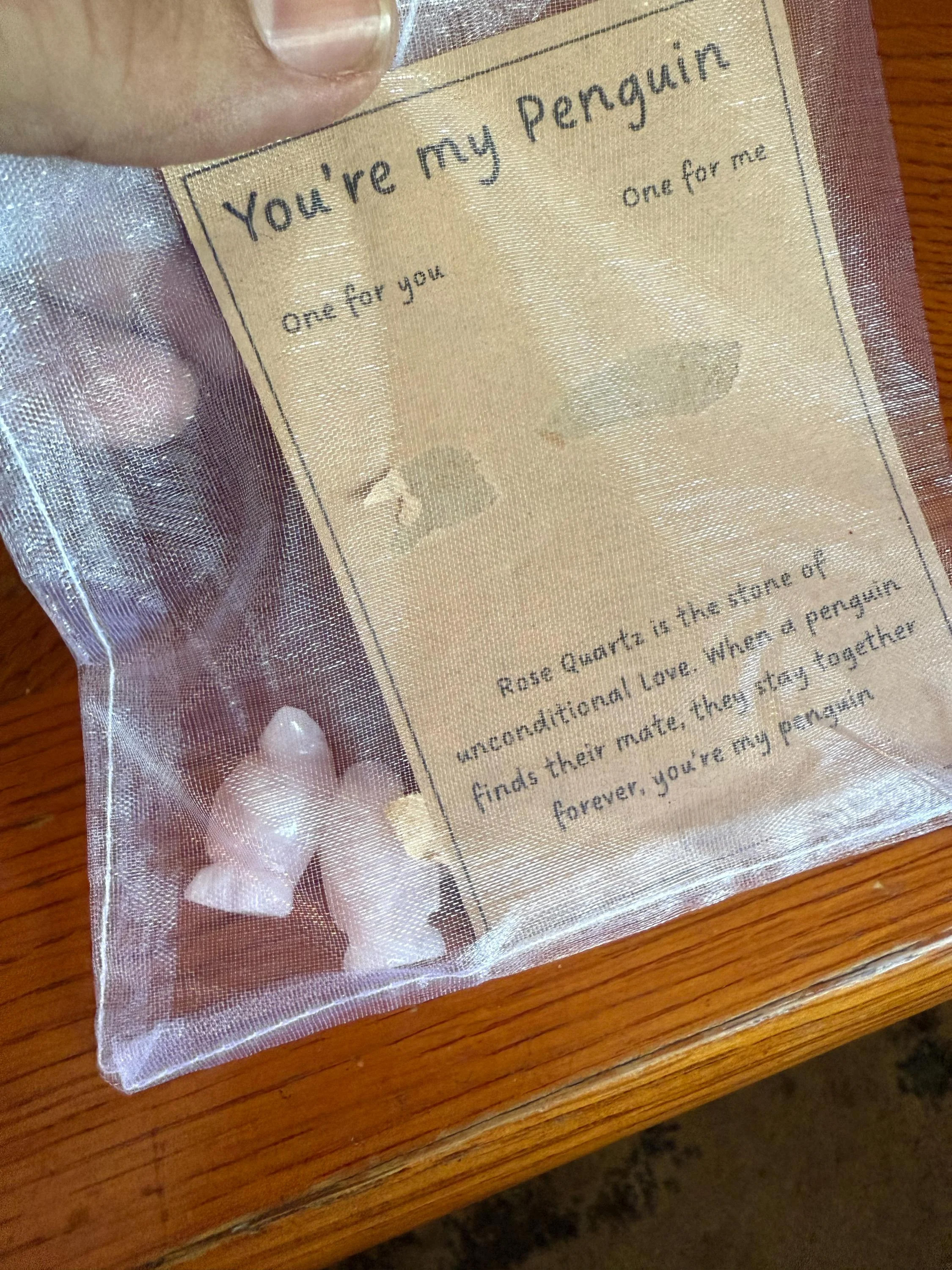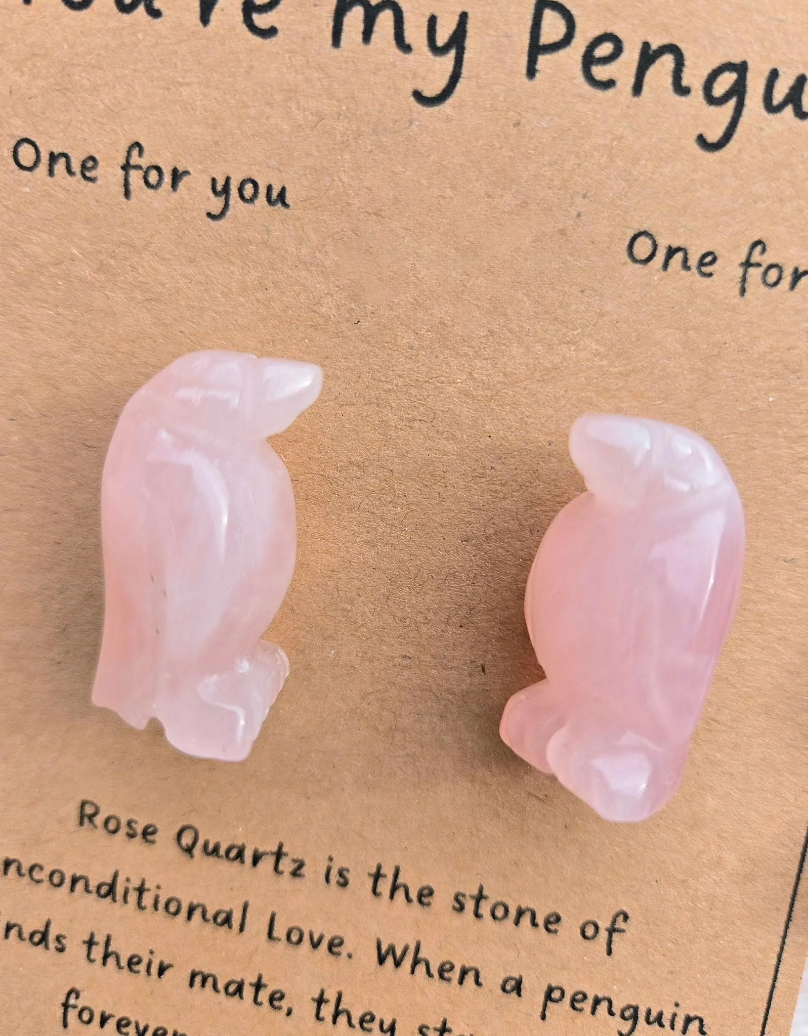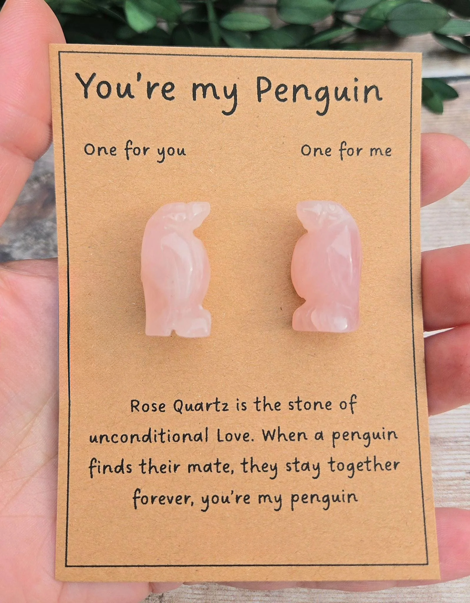 A lovely rose quartz penguin gift for your beloved. My penguin. A perfect gift for your boyfriend, girlfriend, wife, husband, or friend. Unisex set.
