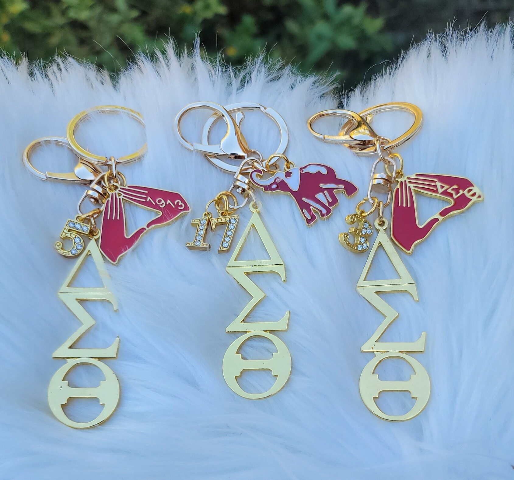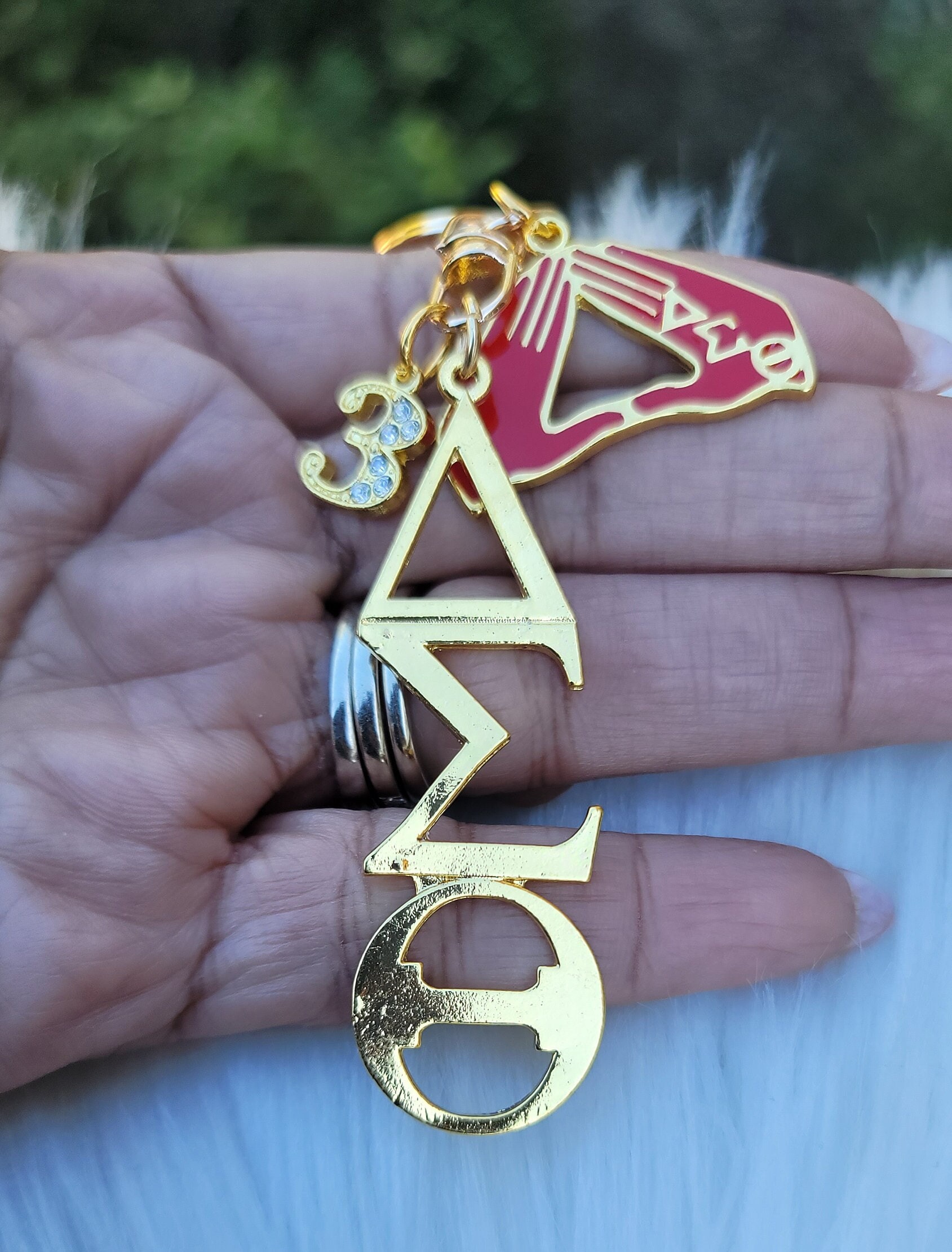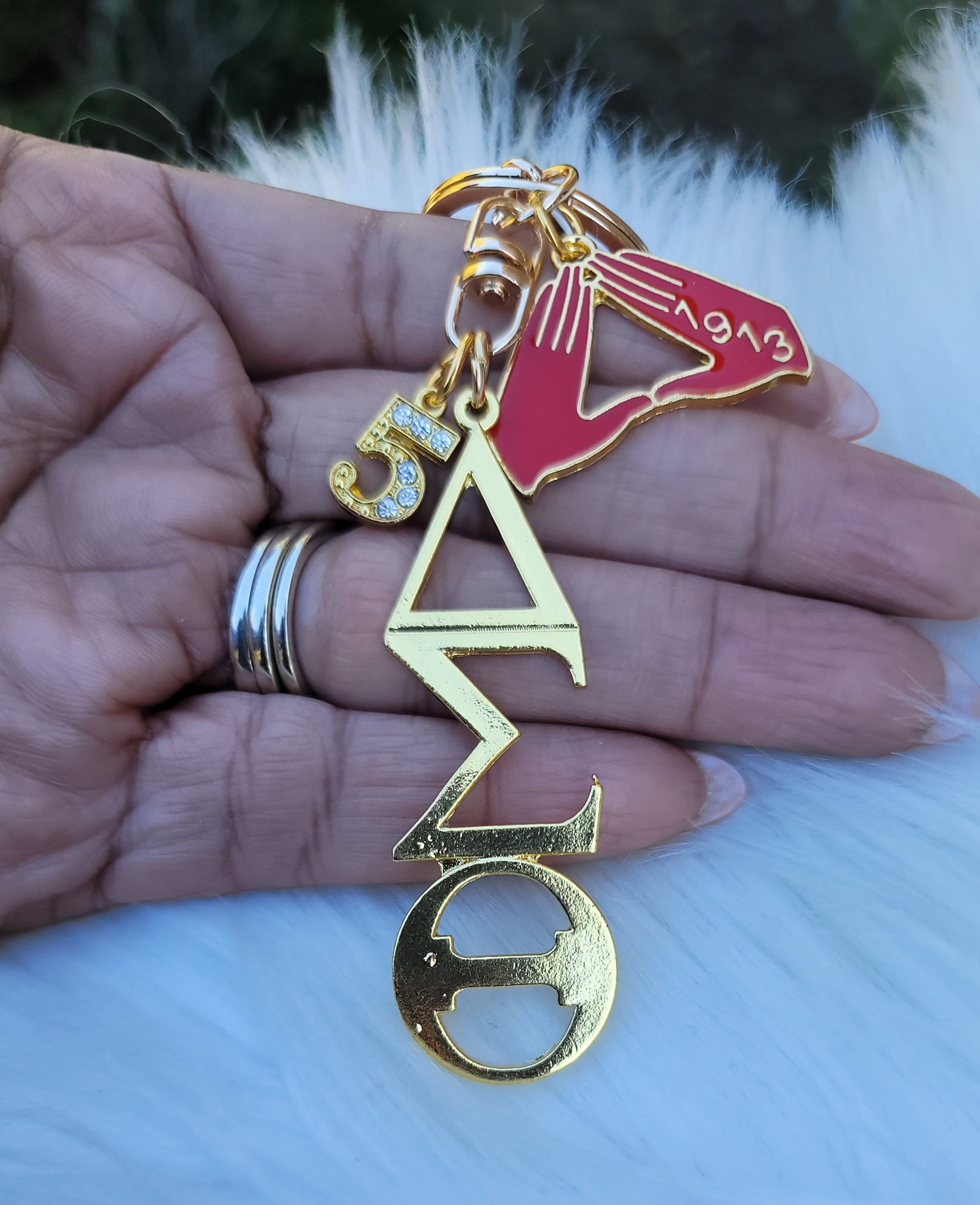 Key rings that represent the beautiful, intelligent ladies of Delta Sigma Theta Sorority. Let your key chain do the talking, these handmade key chains make the perfect unique gift for your favorite Delta.