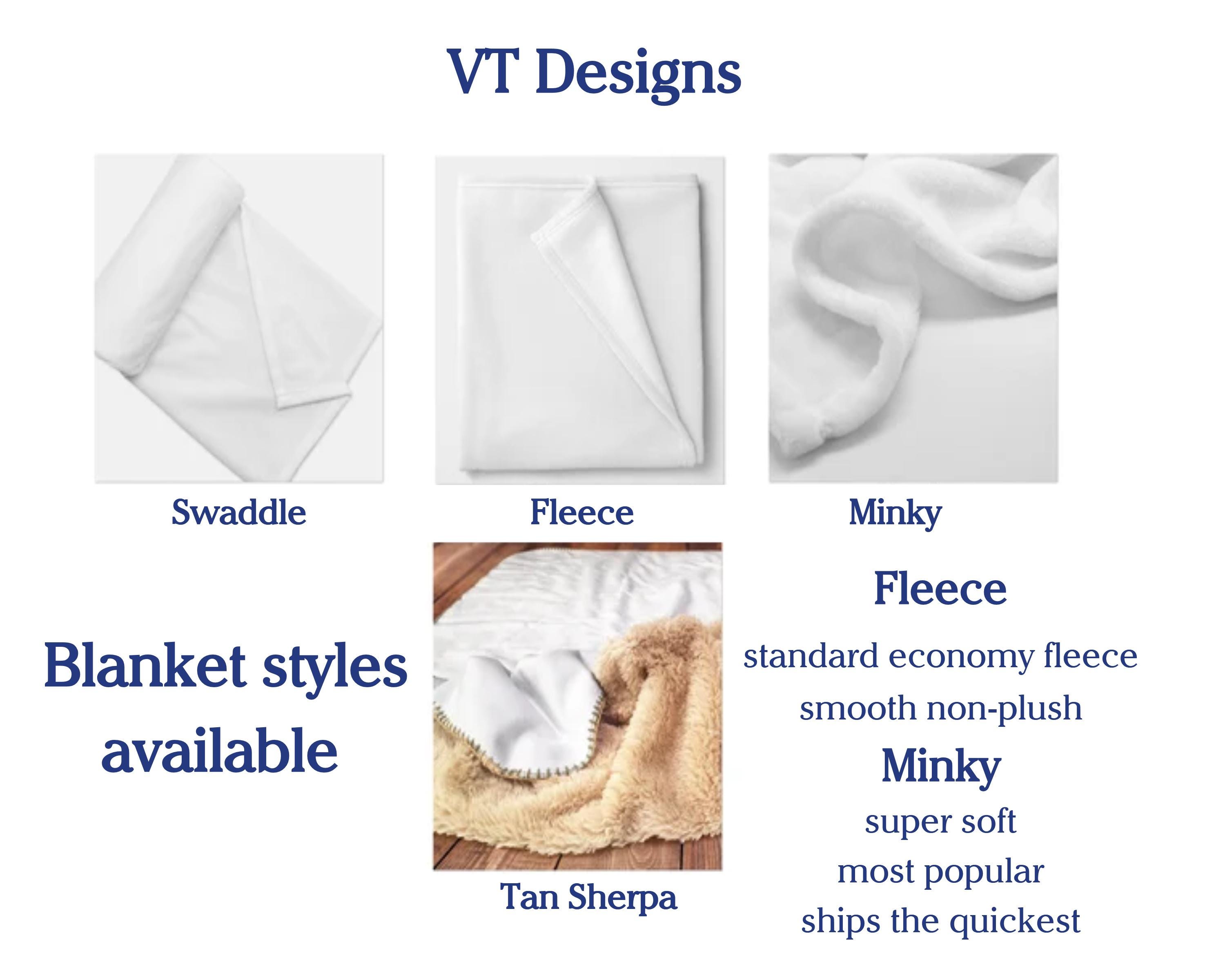 Leave a comment in the personalization box with the NAME you would like printed on your blanket.
