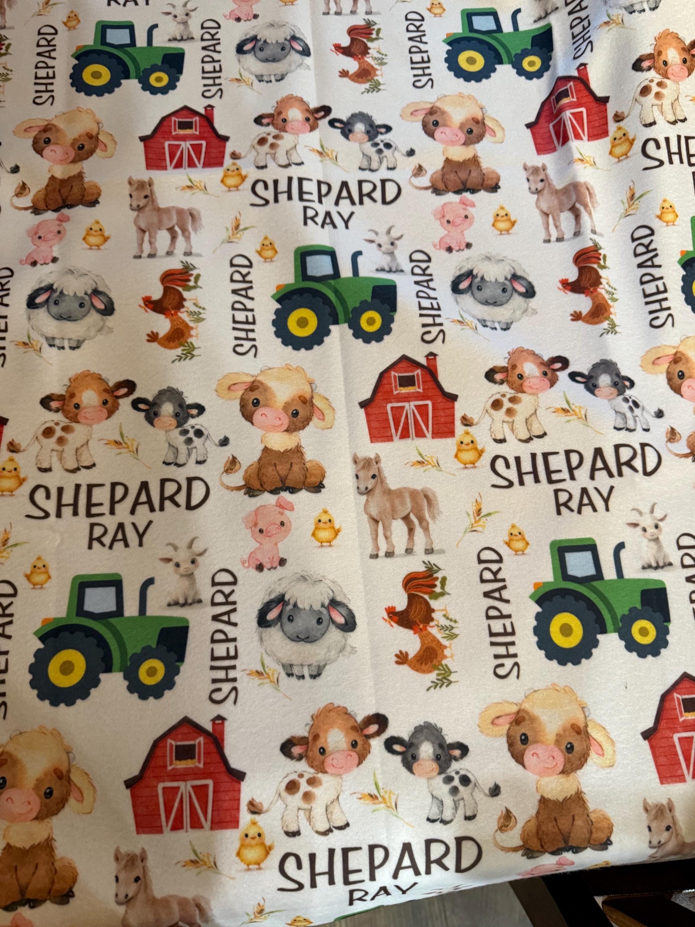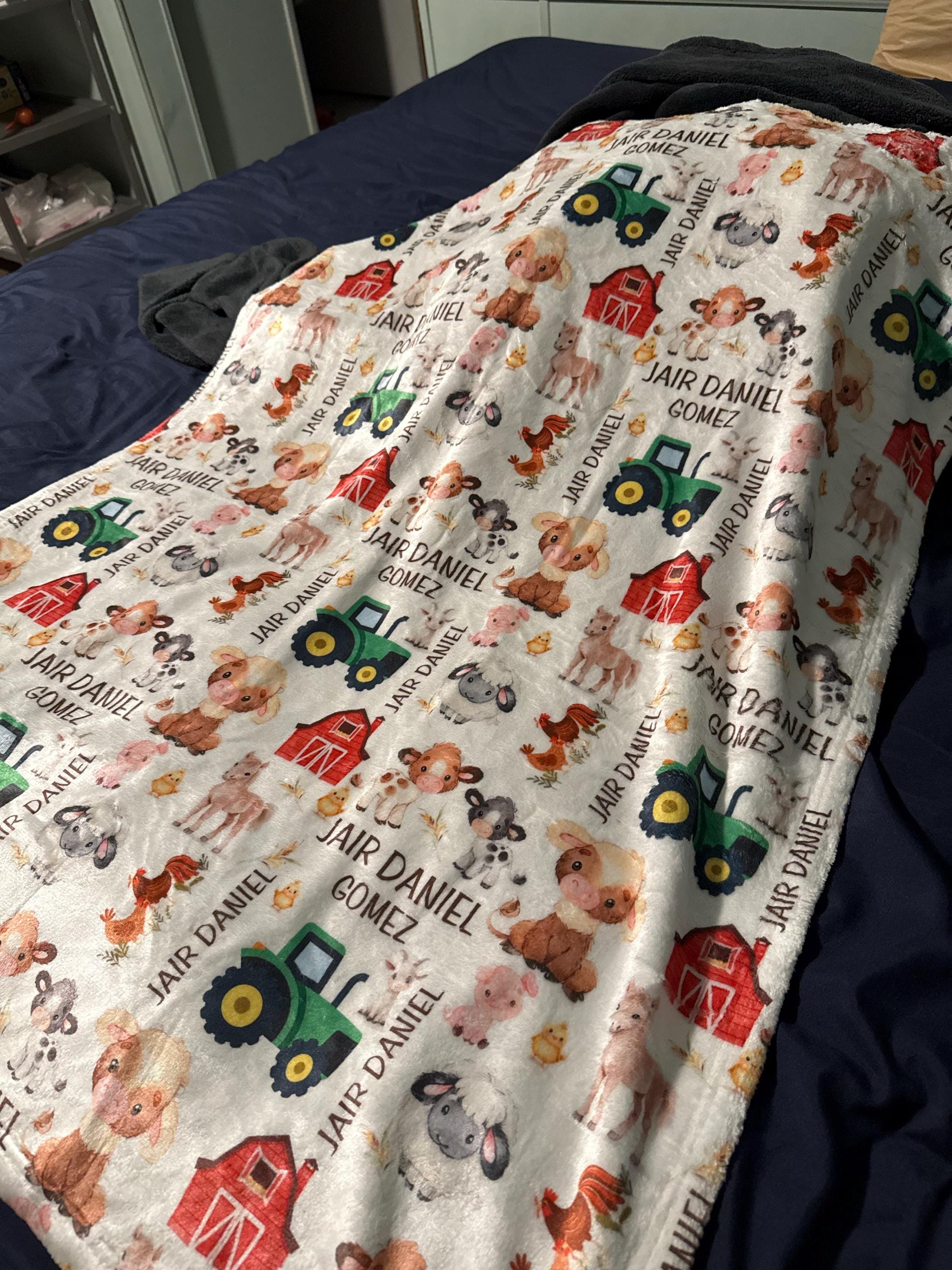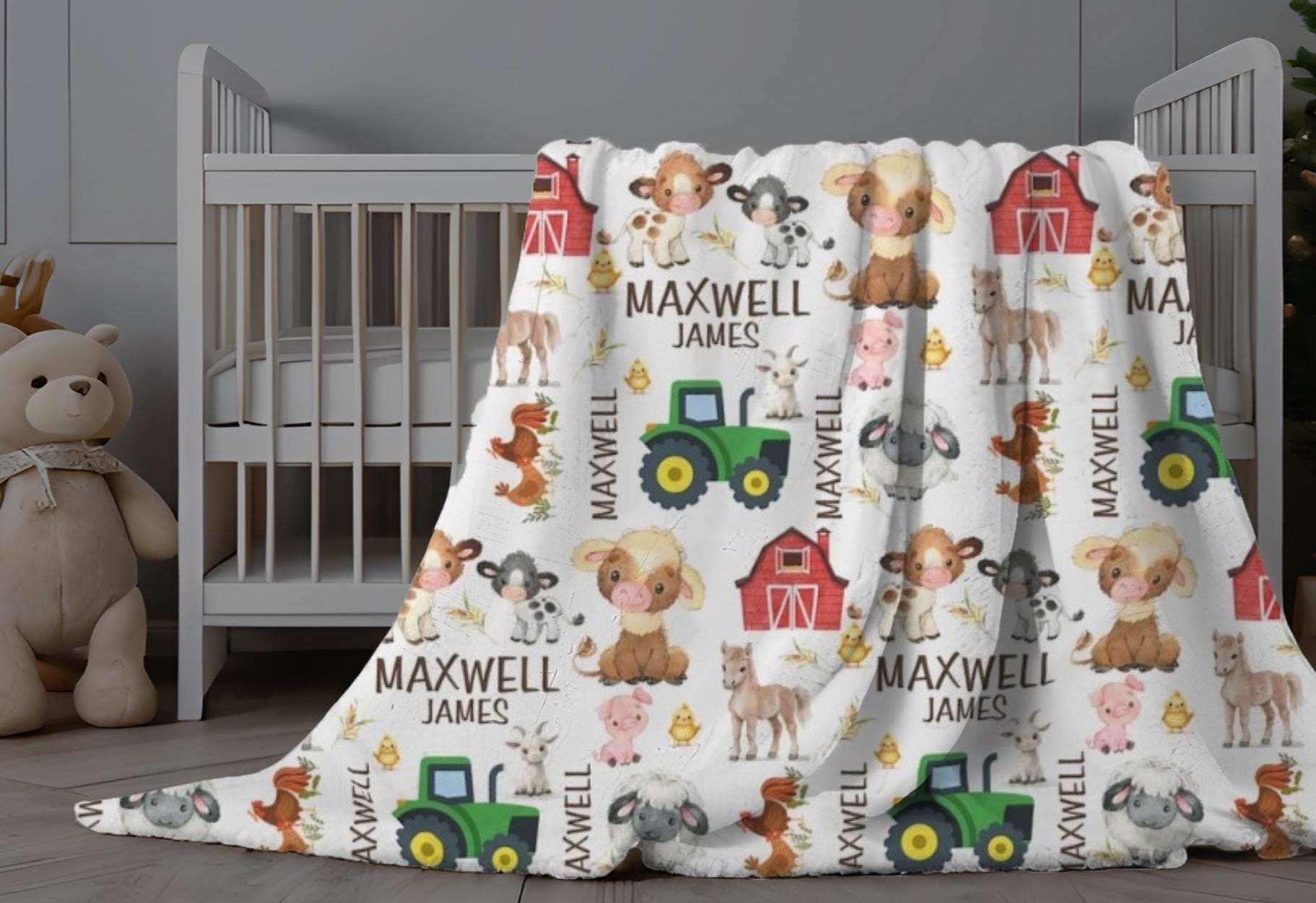 Farm Animal Blanket Baby Boy Personalized Boy Name Blanket Green Tractor Newborn Swaddle Cow Pig Goat Blanket with Name Hospital Blanket, F54