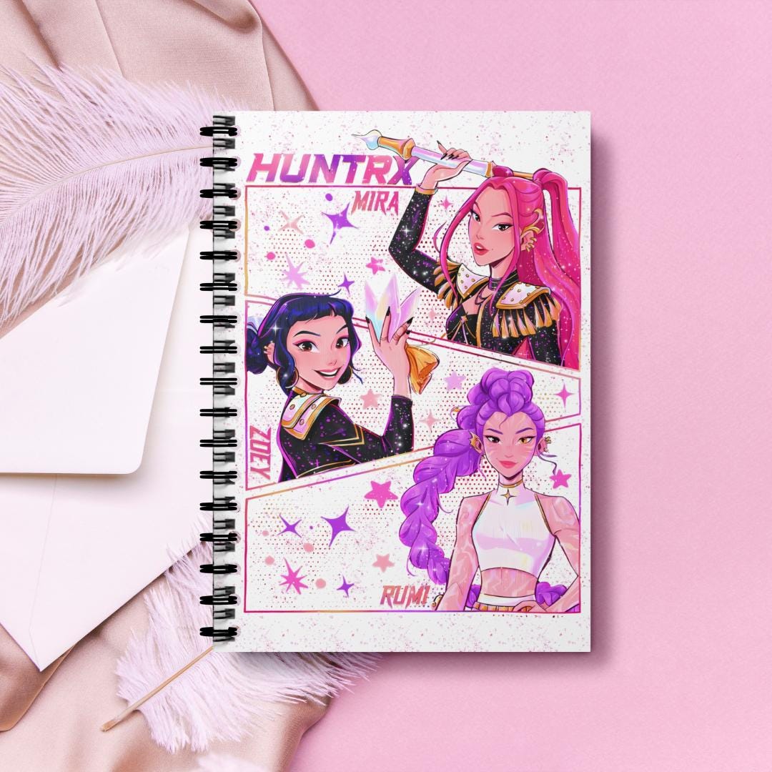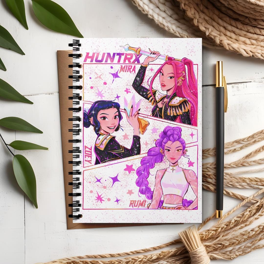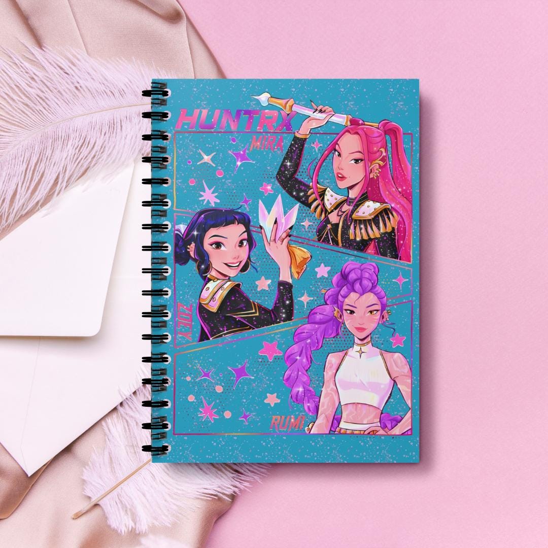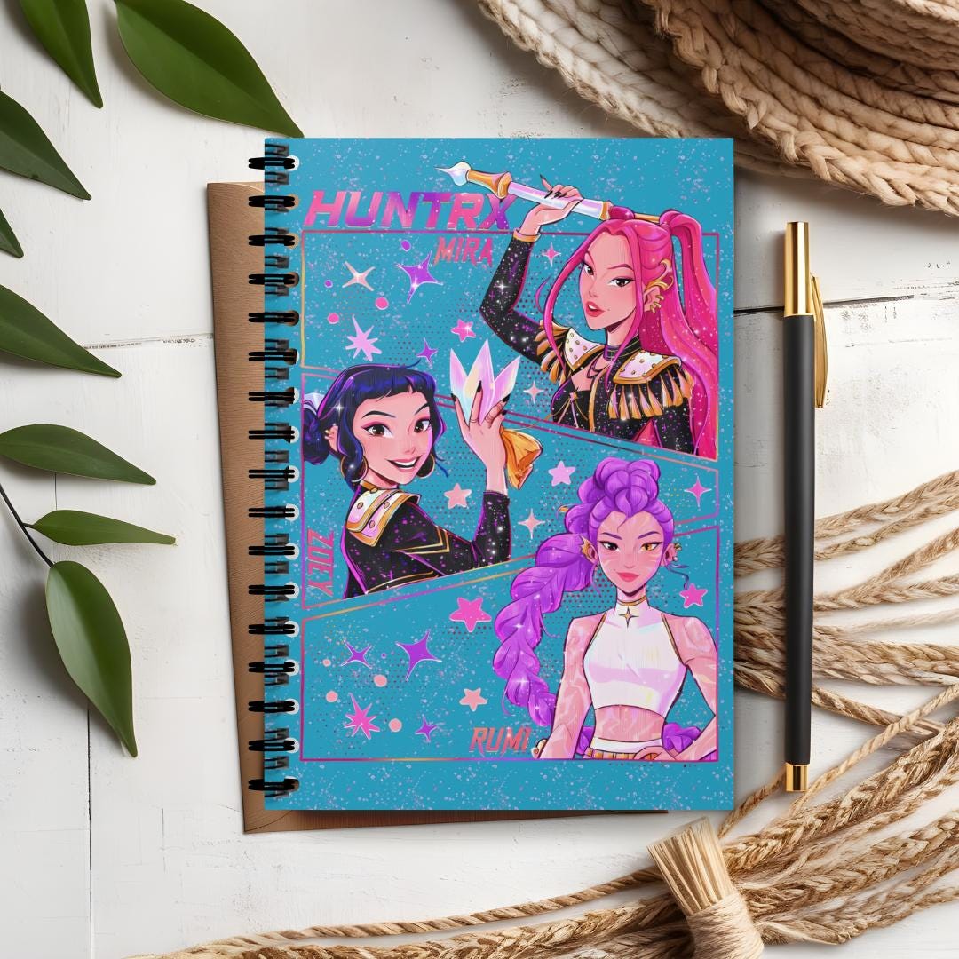 Show your love for K-Pop with this brightly colored spiral notebook! The cover features beautiful anime-style illustrations of Mira, Rumi, and Zoe. Whether you're taking notes, keeping a journal, or brainstorming your next brilliant idea, this notebook is the perfect choice. It blends bold colors, eye-catching character illustrations, and a touch of cosmic charm. A must-have collectible for any fan, K-Pop enthusiast, or anime lover. A unique gift for a friend, classmate, or yourself! Product Features: