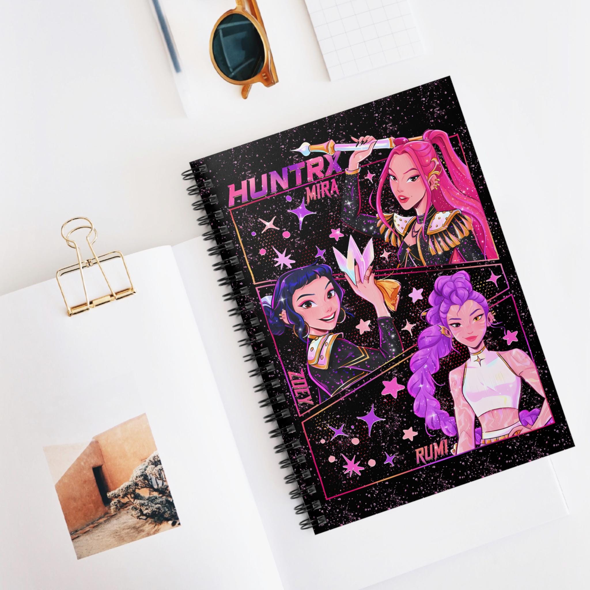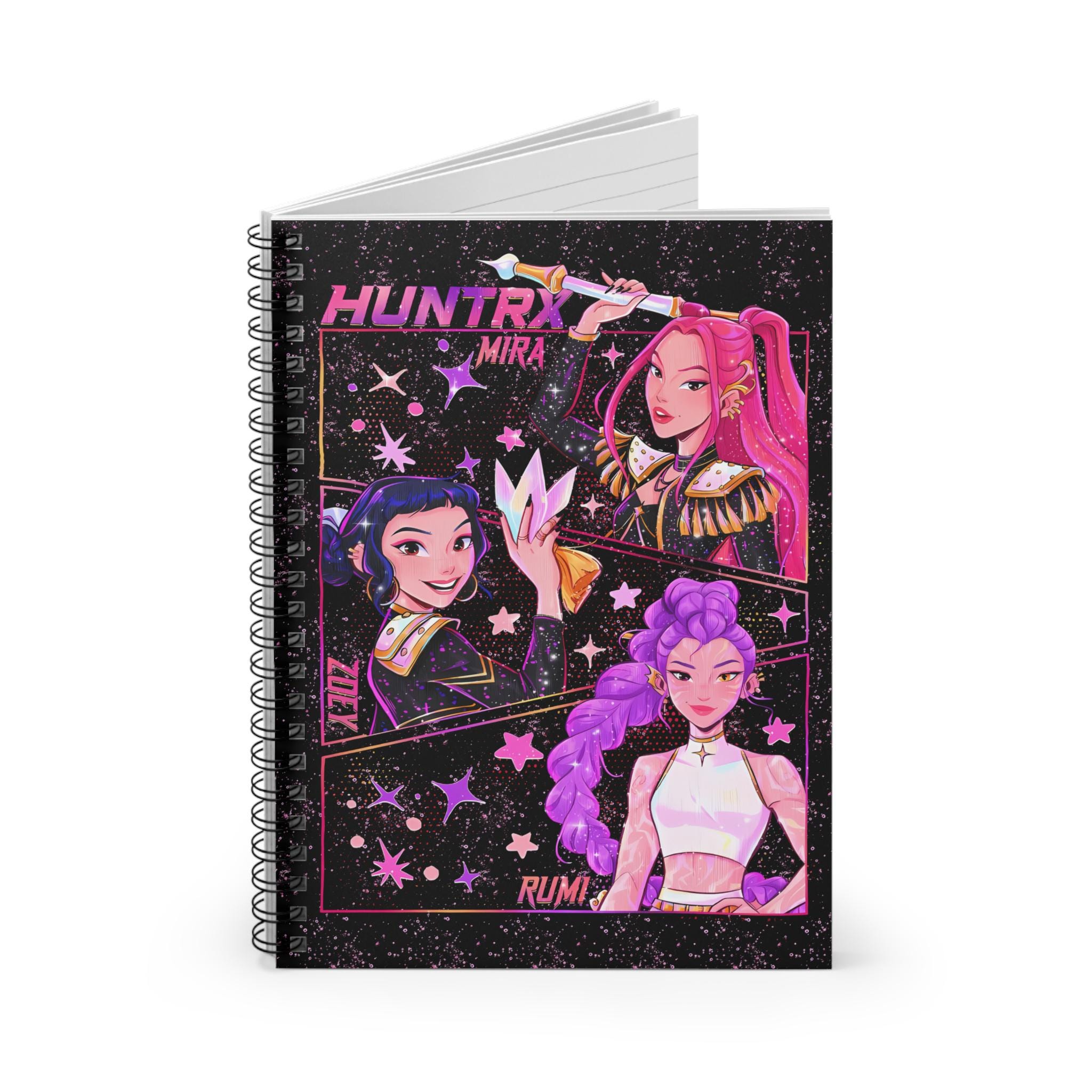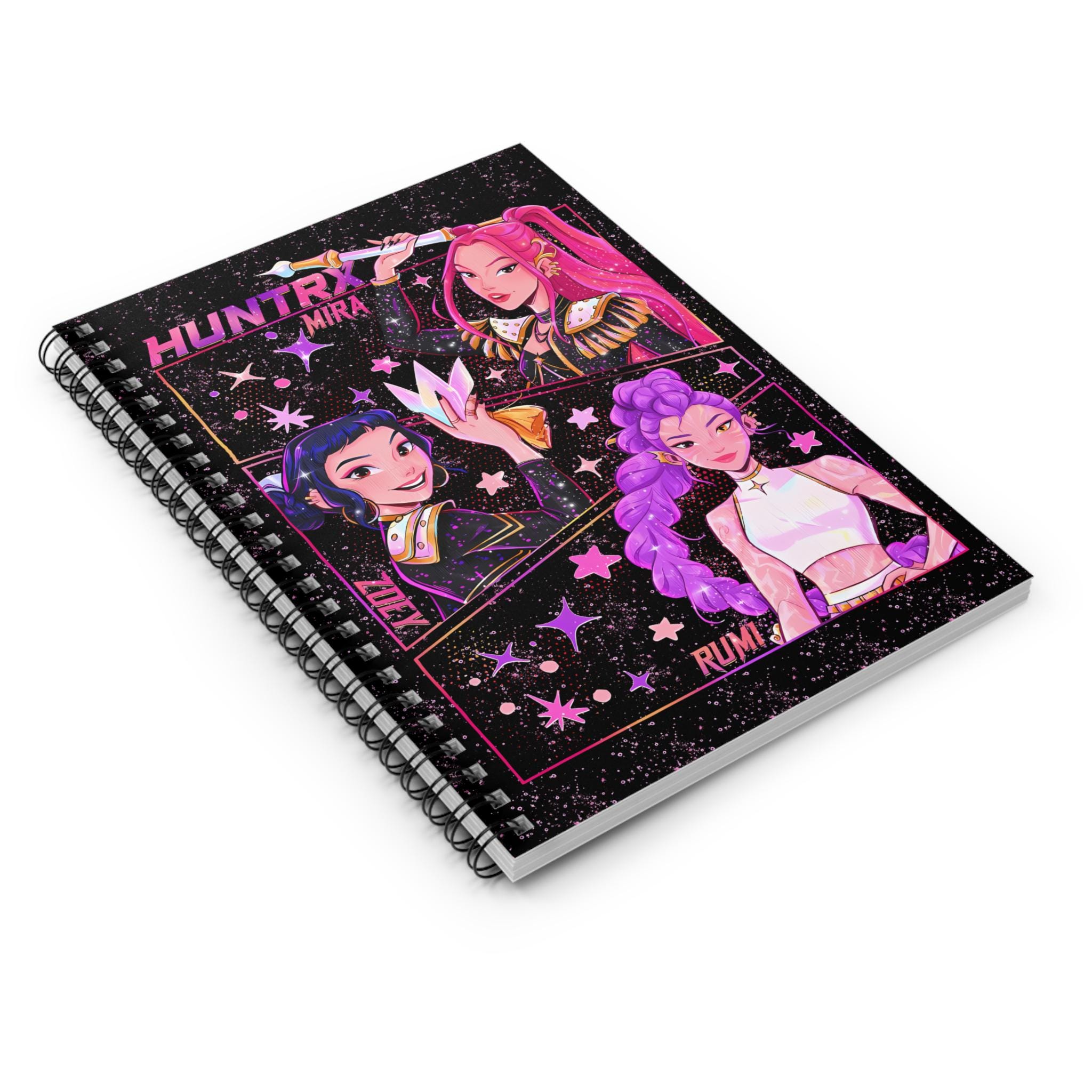 Show your love for K-Pop with this brightly colored spiral notebook! The cover features beautiful anime-style illustrations of Mira, Rumi, and Zoe. Whether you're taking notes, keeping a journal, or brainstorming your next brilliant idea, this notebook is the perfect choice. It blends bold colors, eye-catching character illustrations, and a touch of cosmic charm. A must-have collectible for any fan, K-Pop enthusiast, or anime lover. A unique gift for a friend, classmate, or yourself! Product Features: