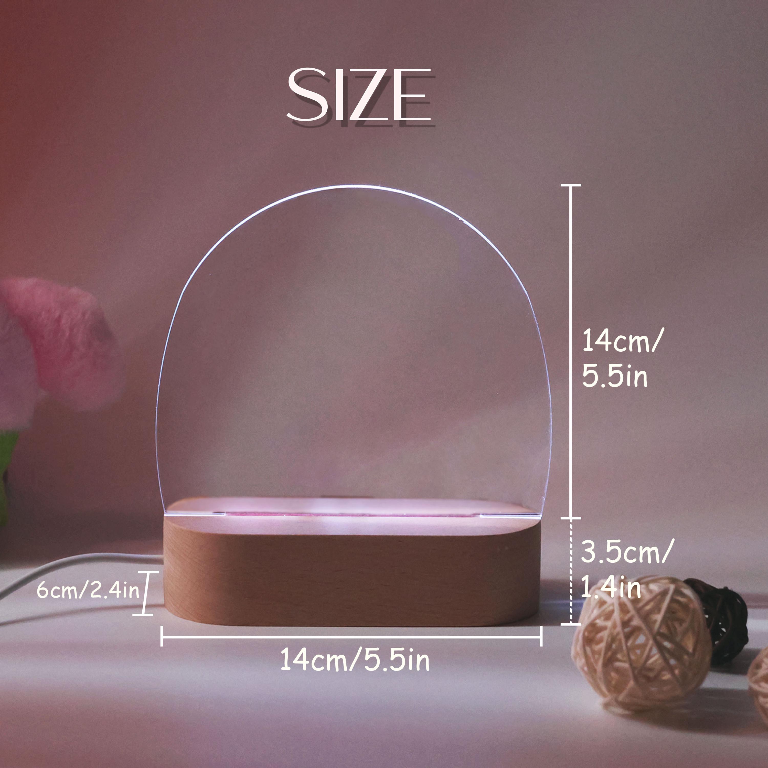 Base: LED wooden stand with a USB cord and on/off switch (USB adapter/charger needed for wall plug-in)
