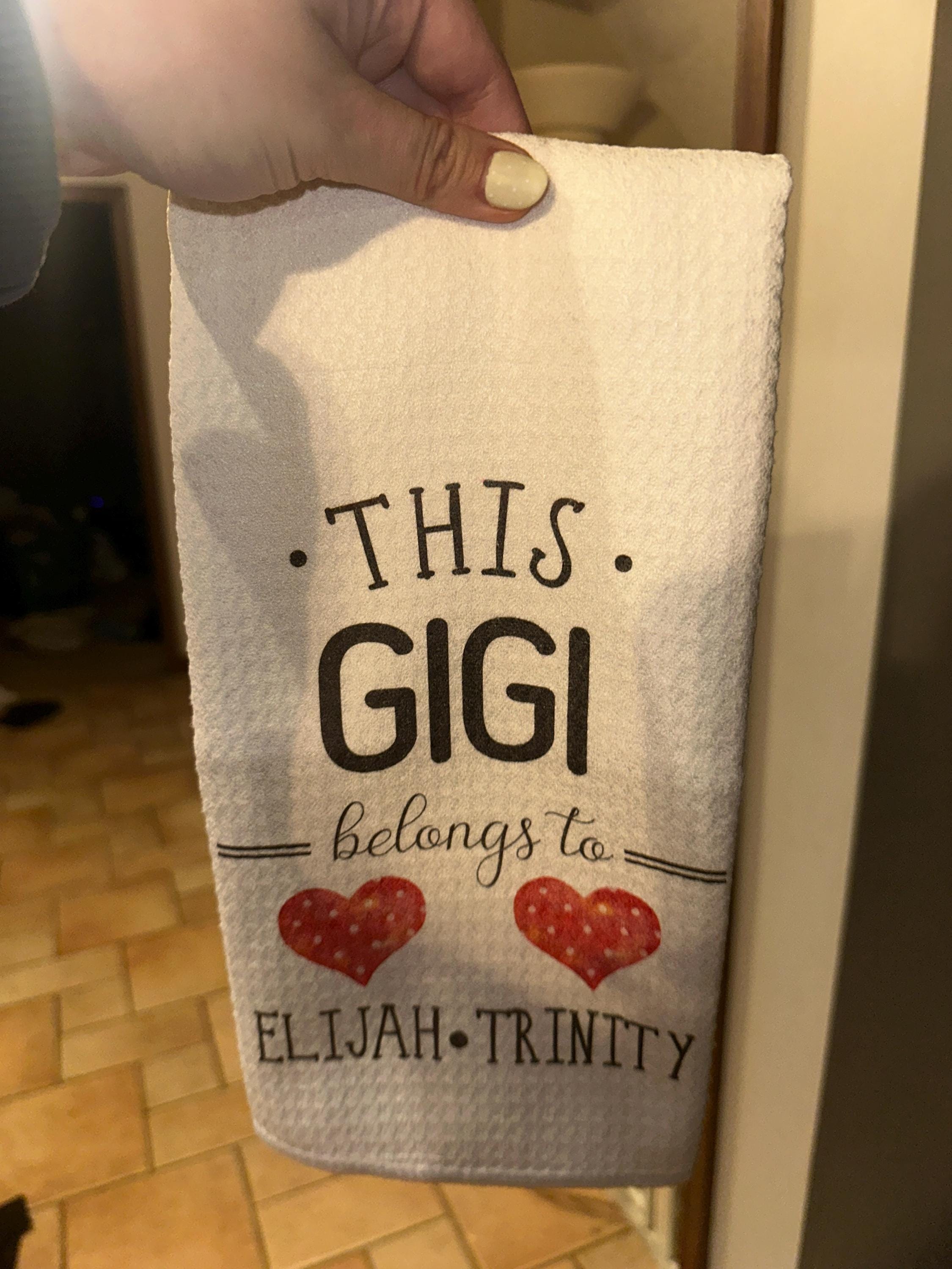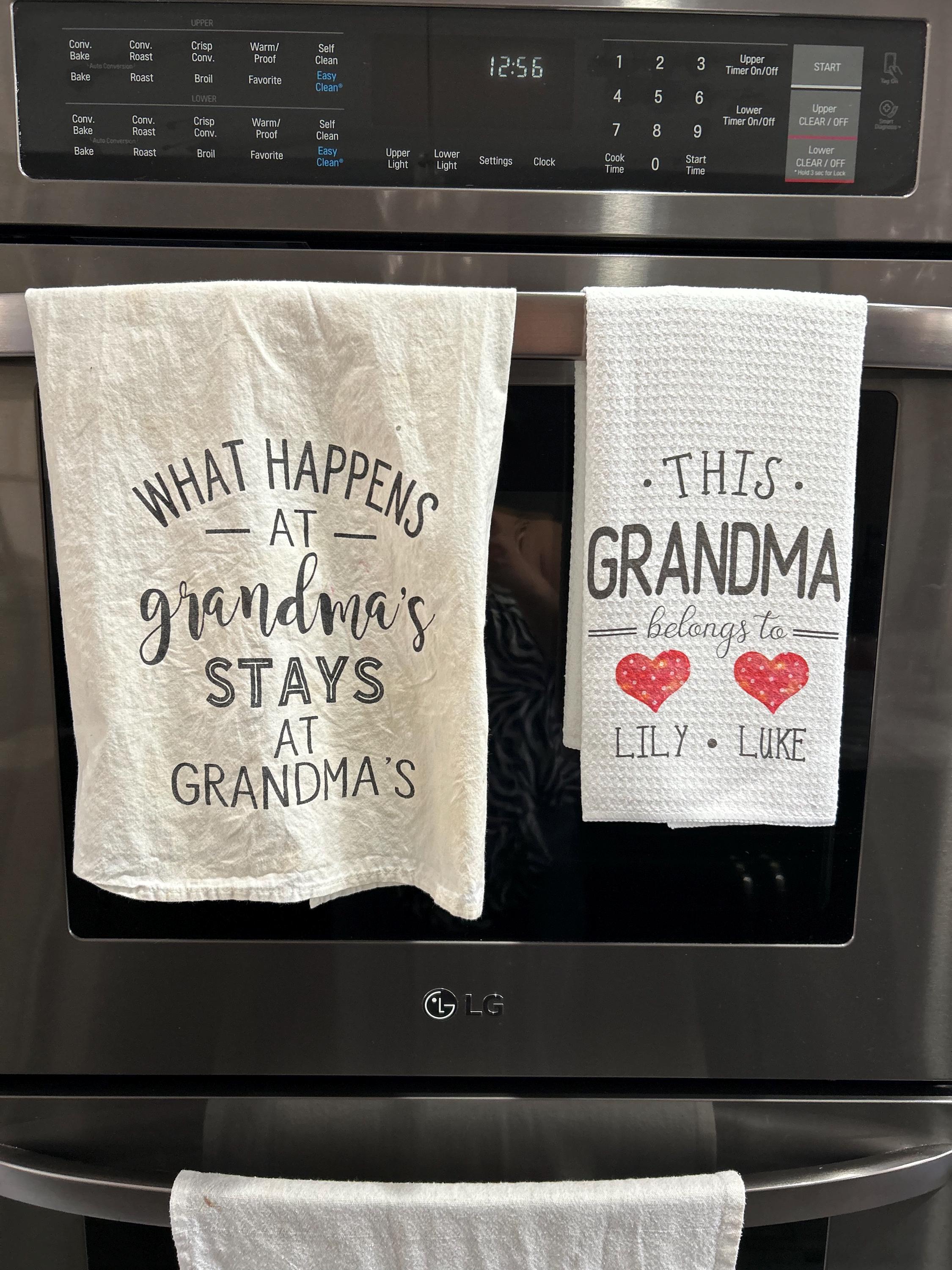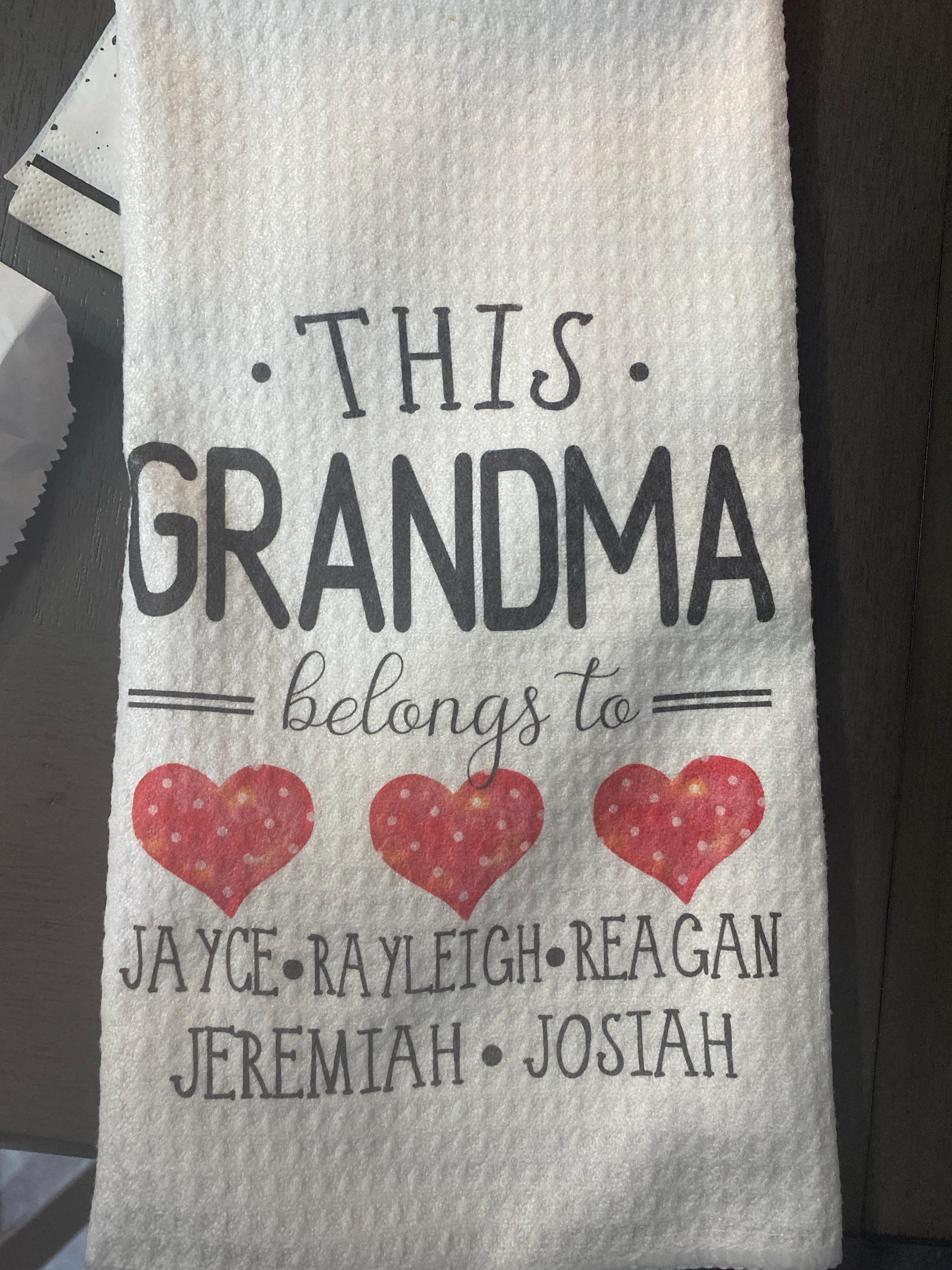 Personalization Instructions: If you would like the towel to be printed with "Grandma's Choice" (as shown in the picture), simply enter your child's name in the personalization section. If you would like to use a word other than "Grandma," please be sure to specify. If you would like to use a title other than "Grandma," please enter "This mom belongs to..." or "This aunt belongs to..." followed by your child's name.