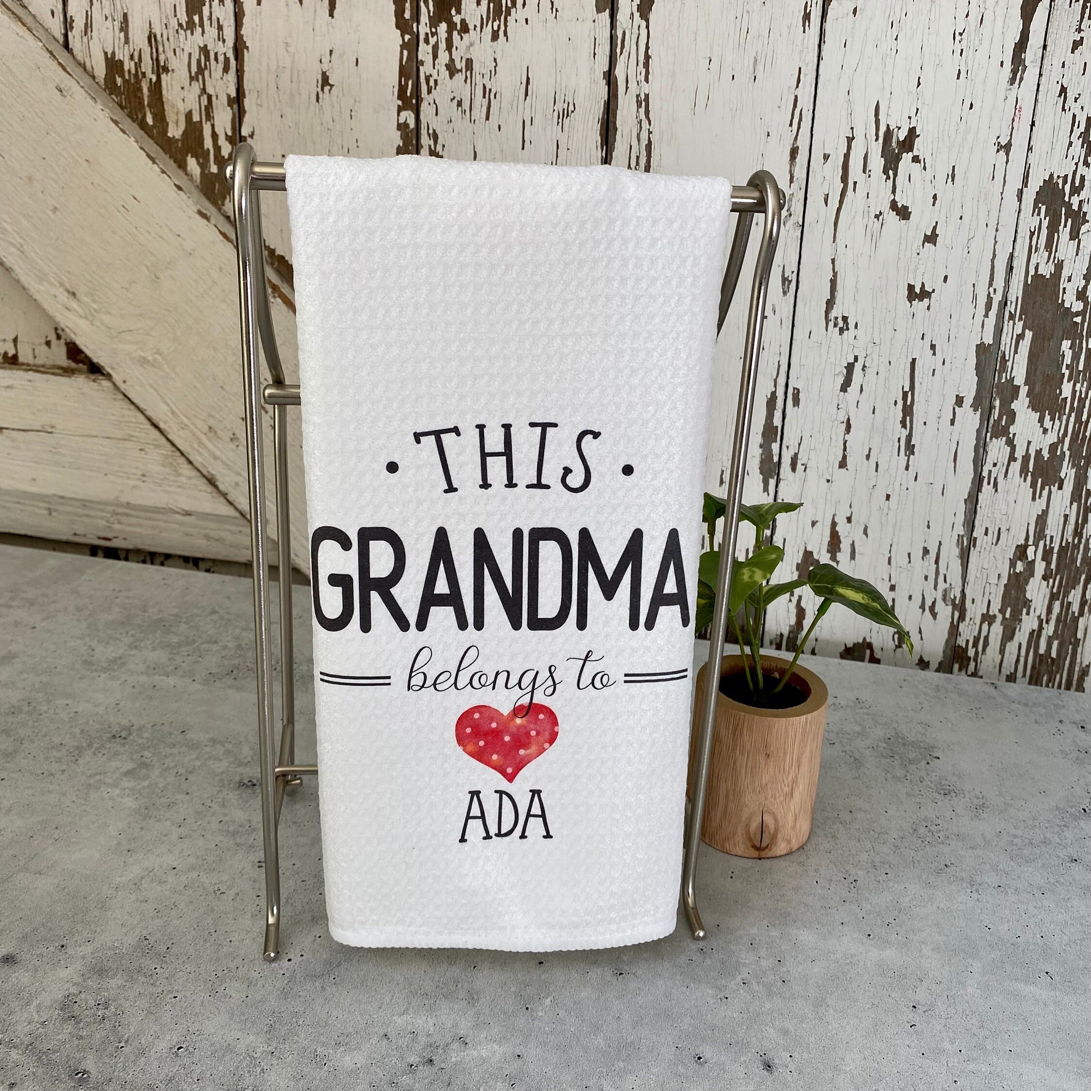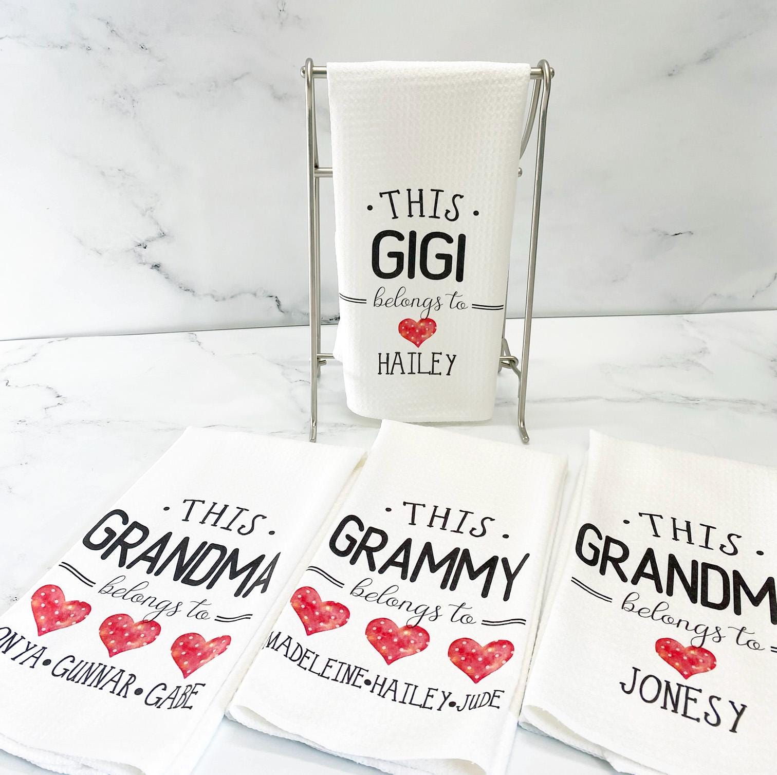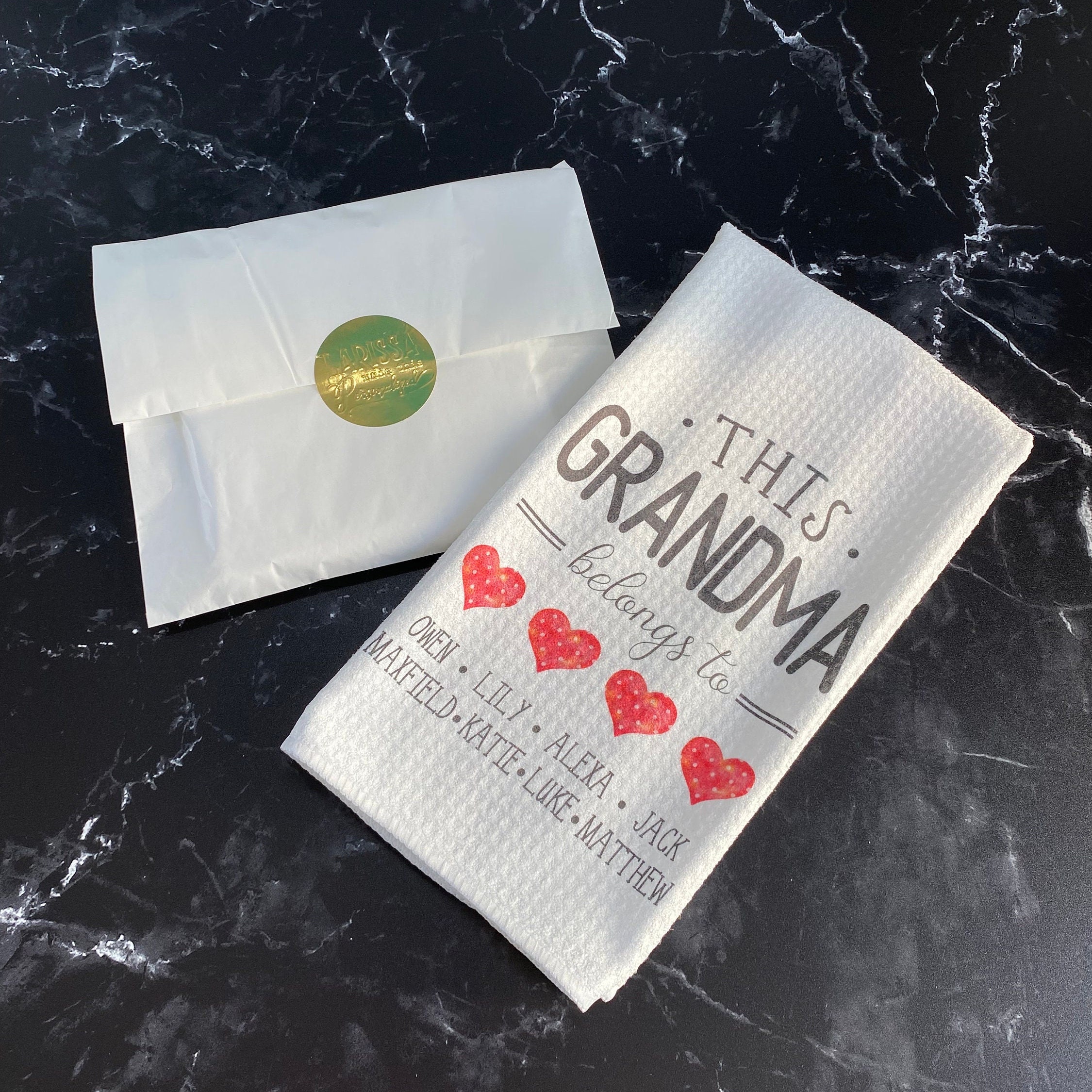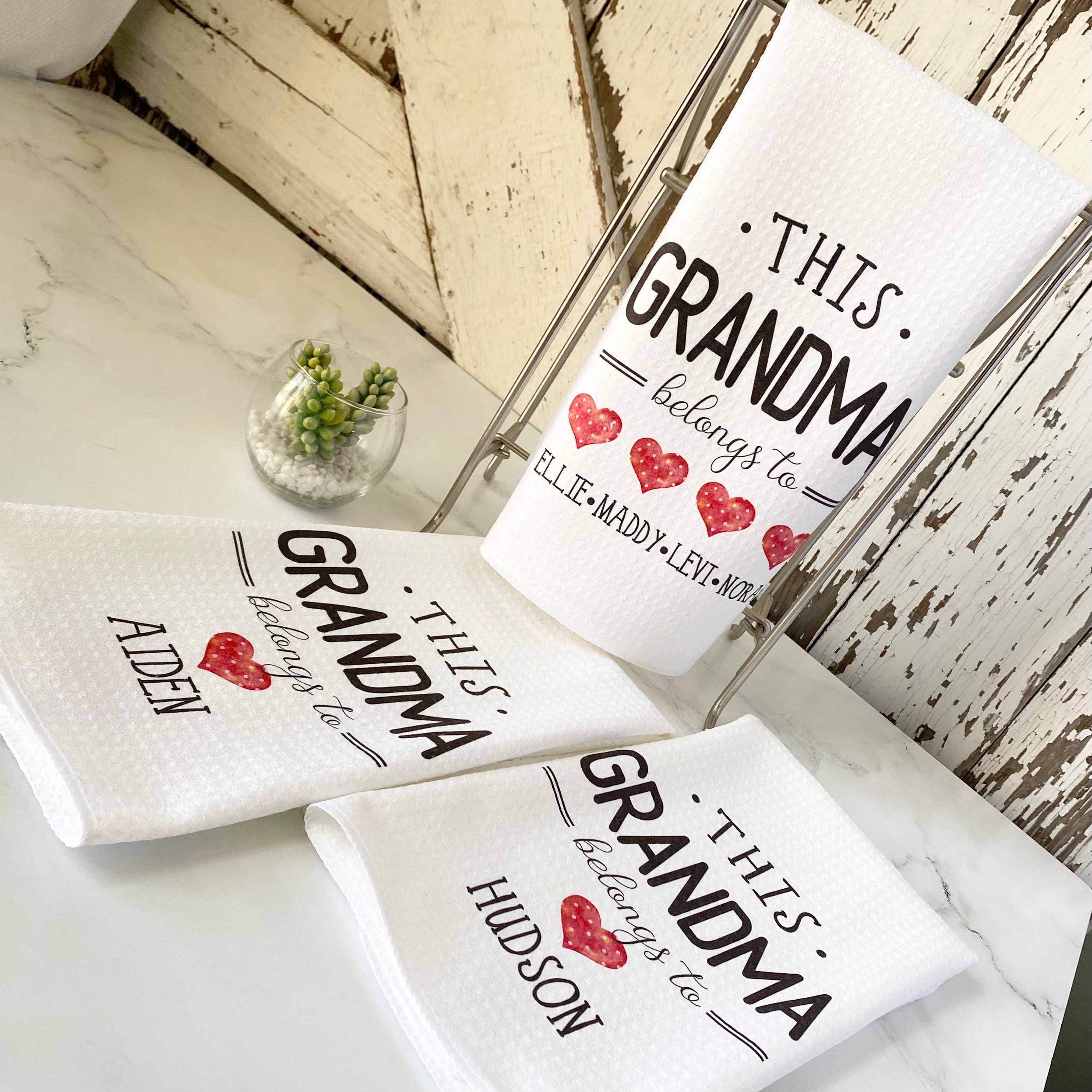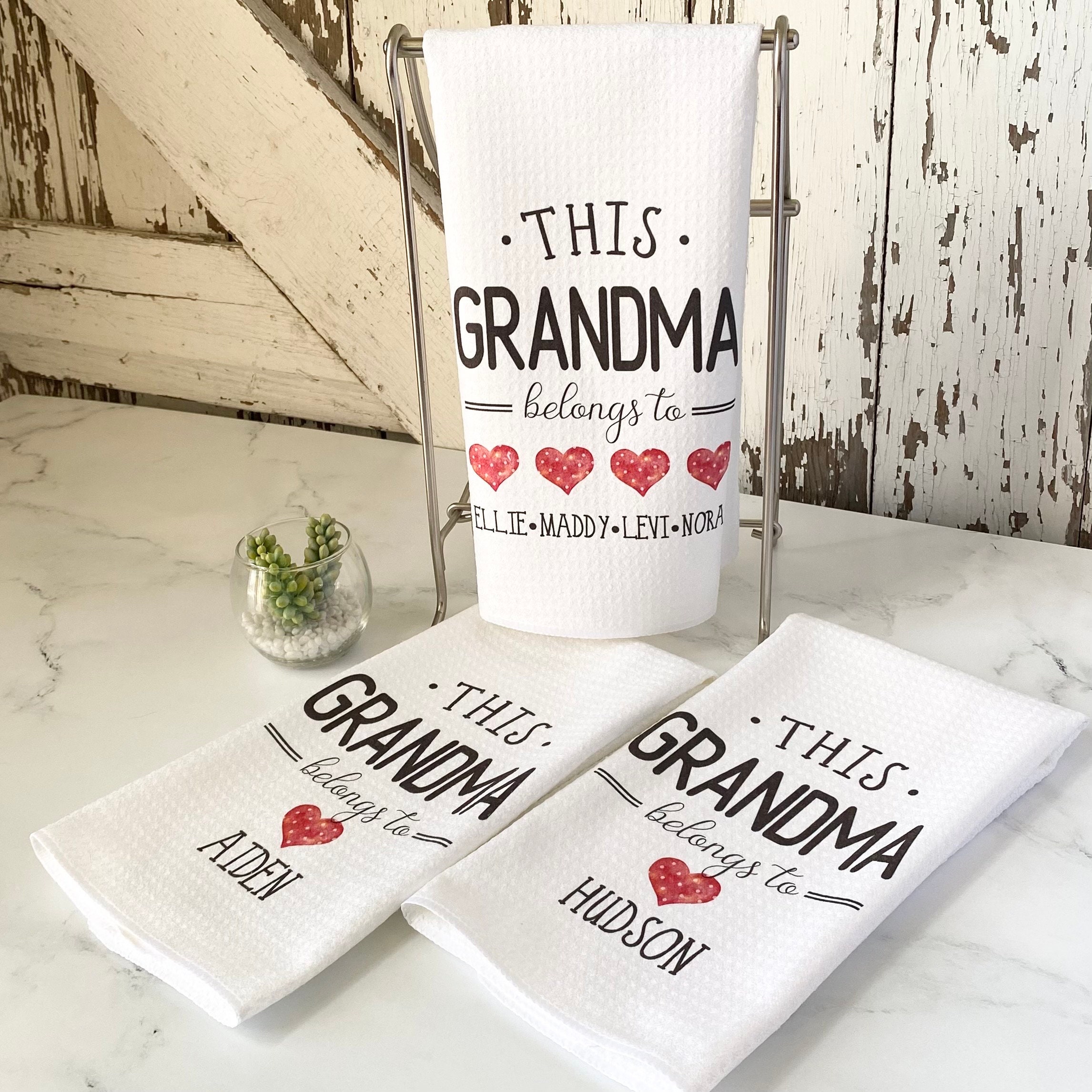 "Grandma's Choice"—This adorable waffle-knit microfiber dishcloth is a special personalized gift for grandma, great-grandma, or great-aunt, and can be customized with all grandchildren's names.