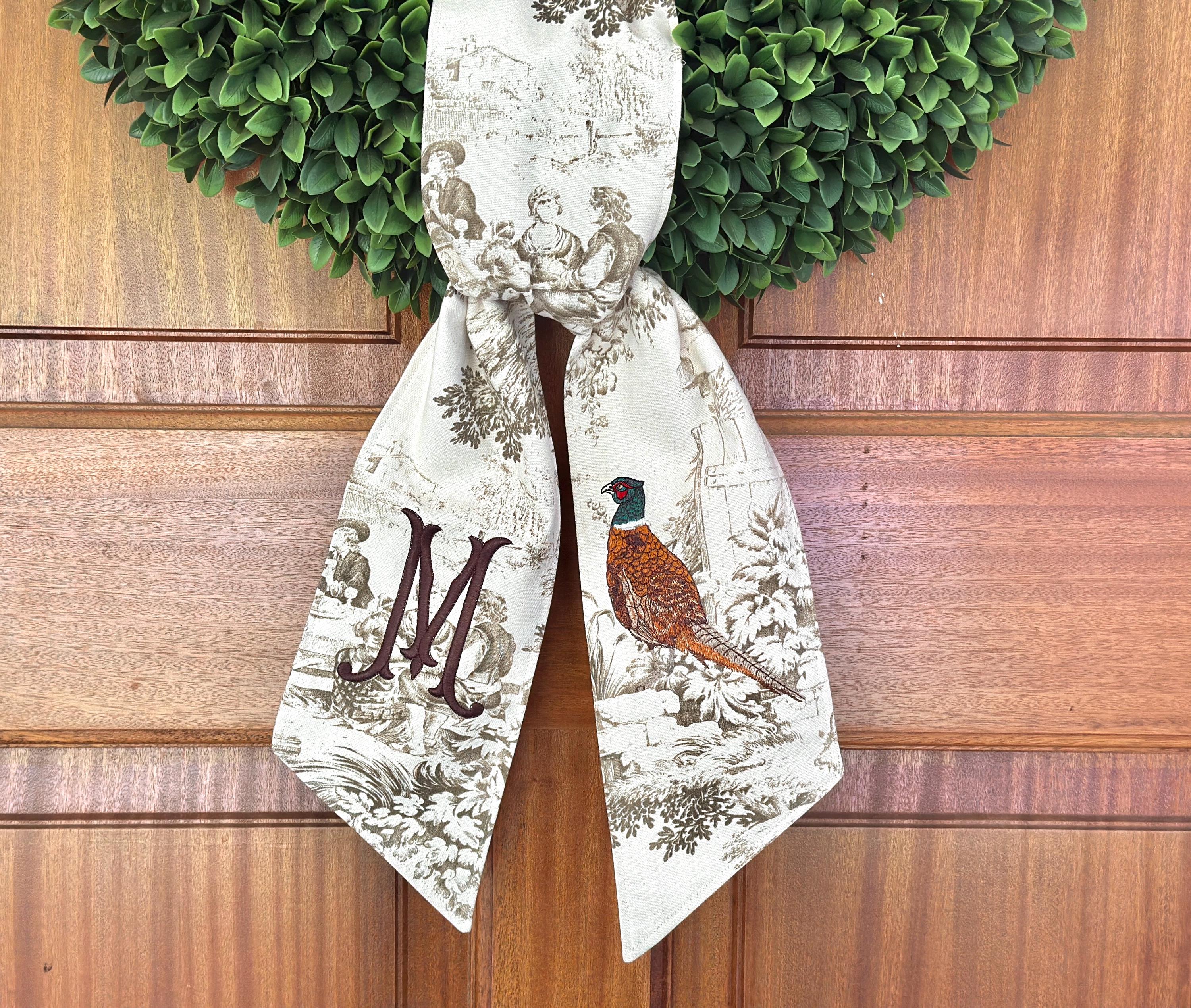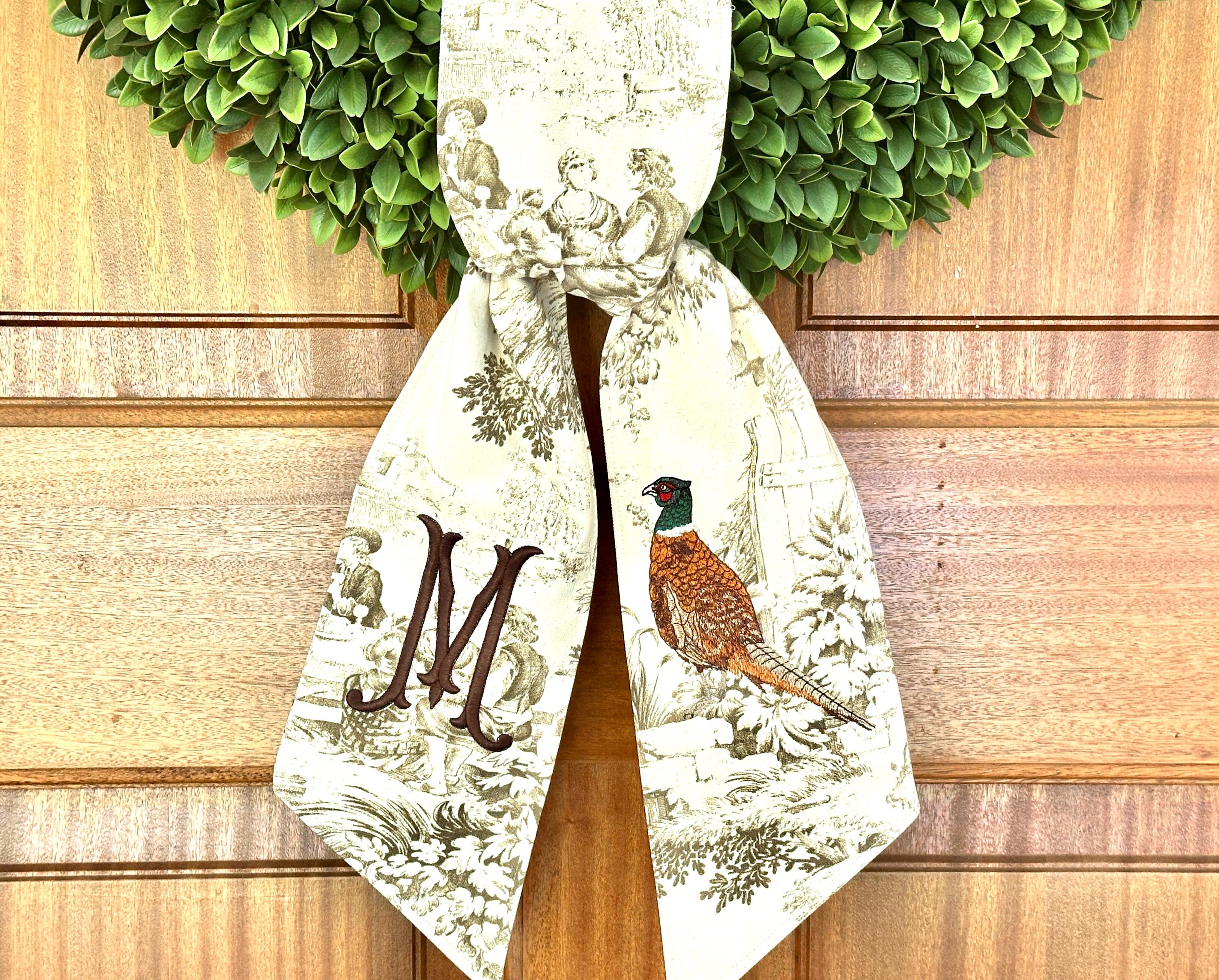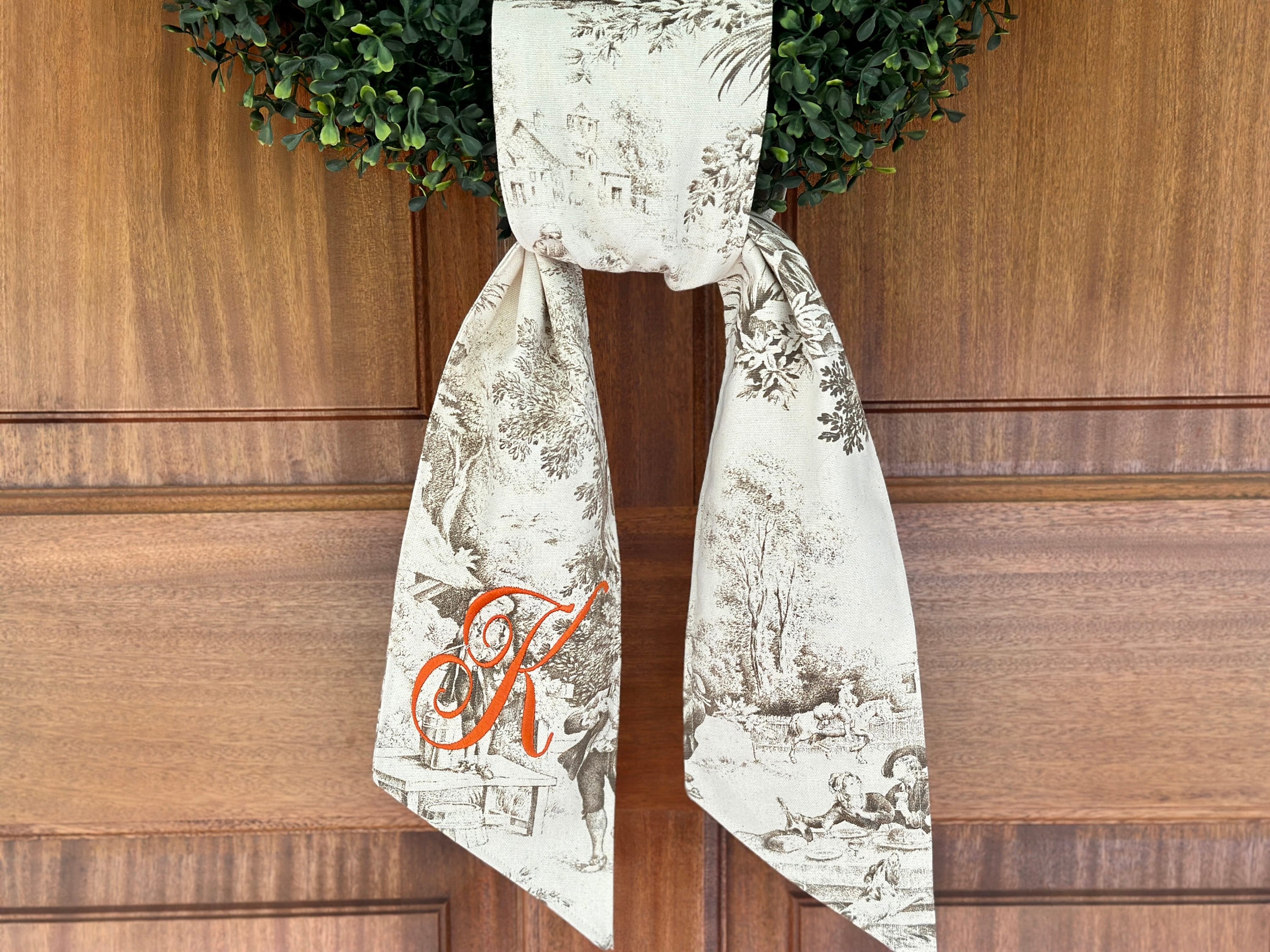 The original toile wreath sash is a beautiful way to welcome autumn, or personalize your front door for the holidays. Keep it simple to greet your guests with a taste of grandmillenial style, or add your harvest colored initials. Because, honestly, if it’s not monogrammed, is it really yours? 😉
