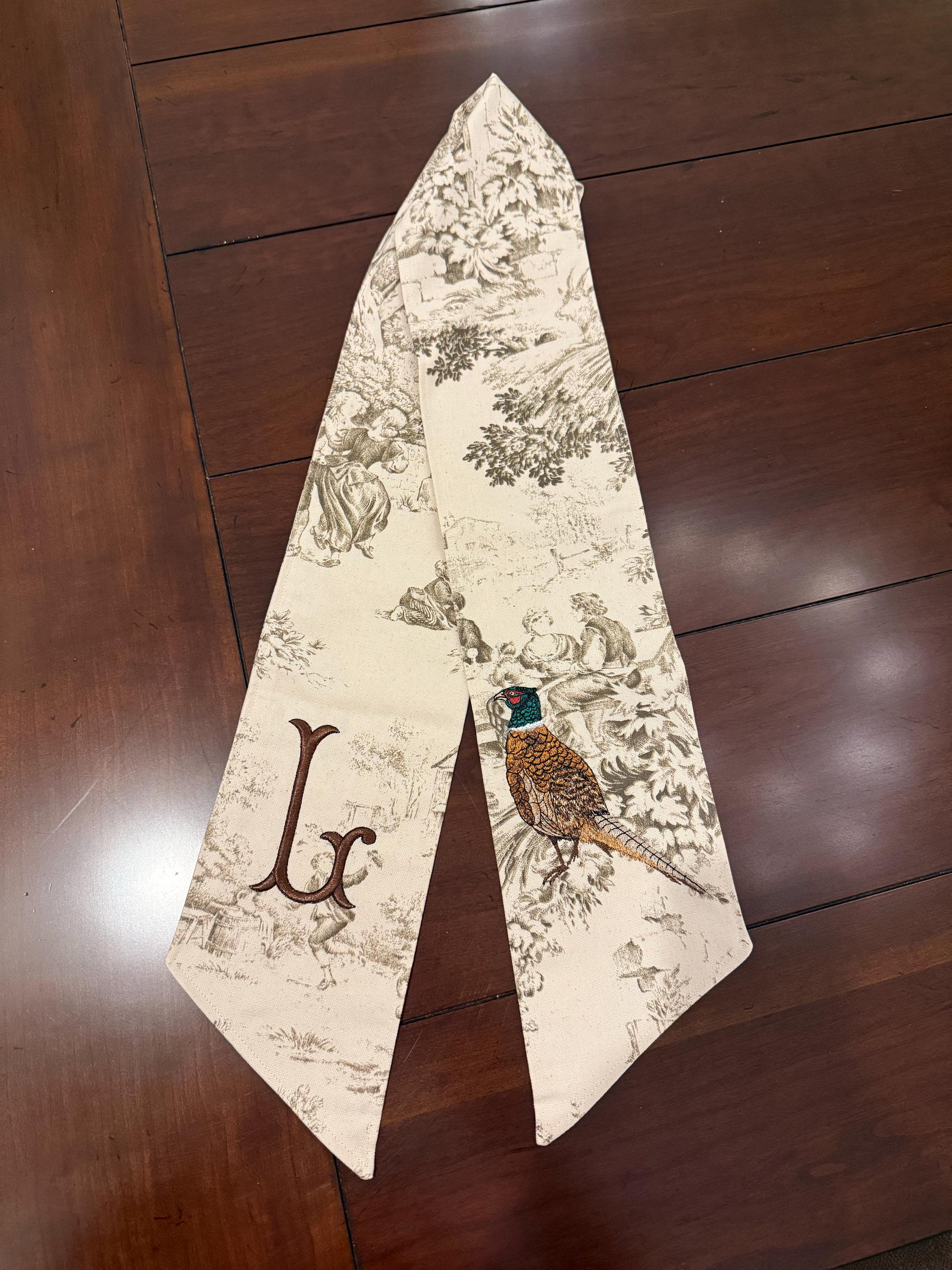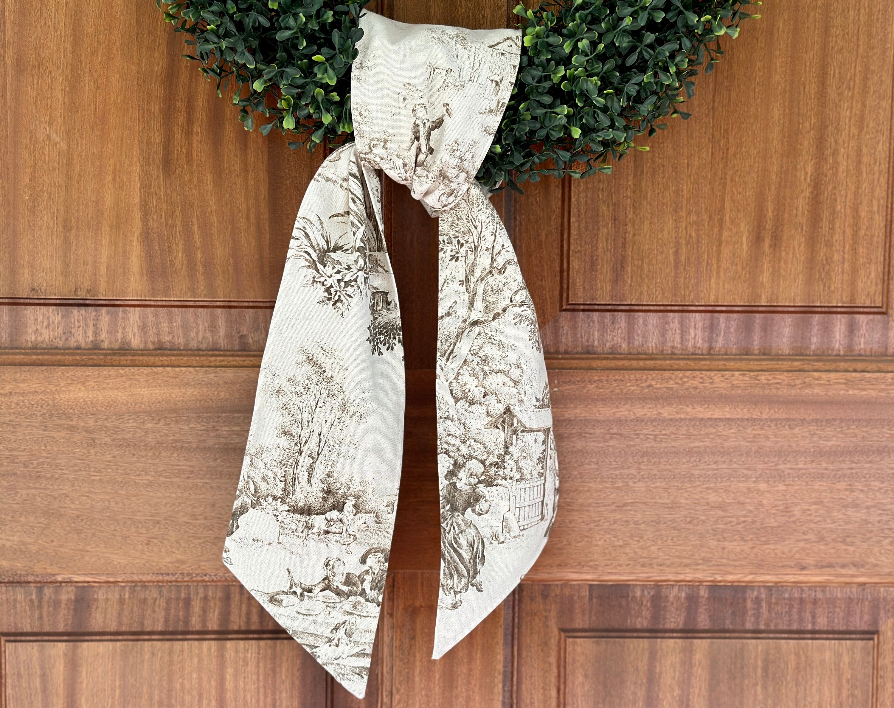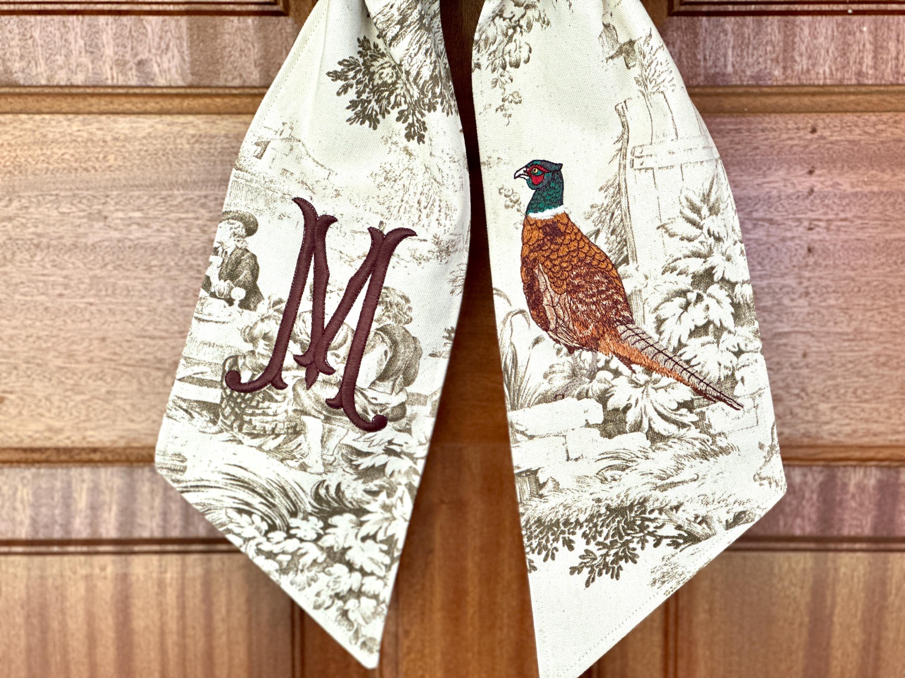 The original toile wreath sash is a beautiful way to welcome autumn, or personalize your front door for the holidays. Keep it simple to greet your guests with a taste of grandmillenial style, or add your harvest colored initials. Because, honestly, if it’s not monogrammed, is it really yours? 😉