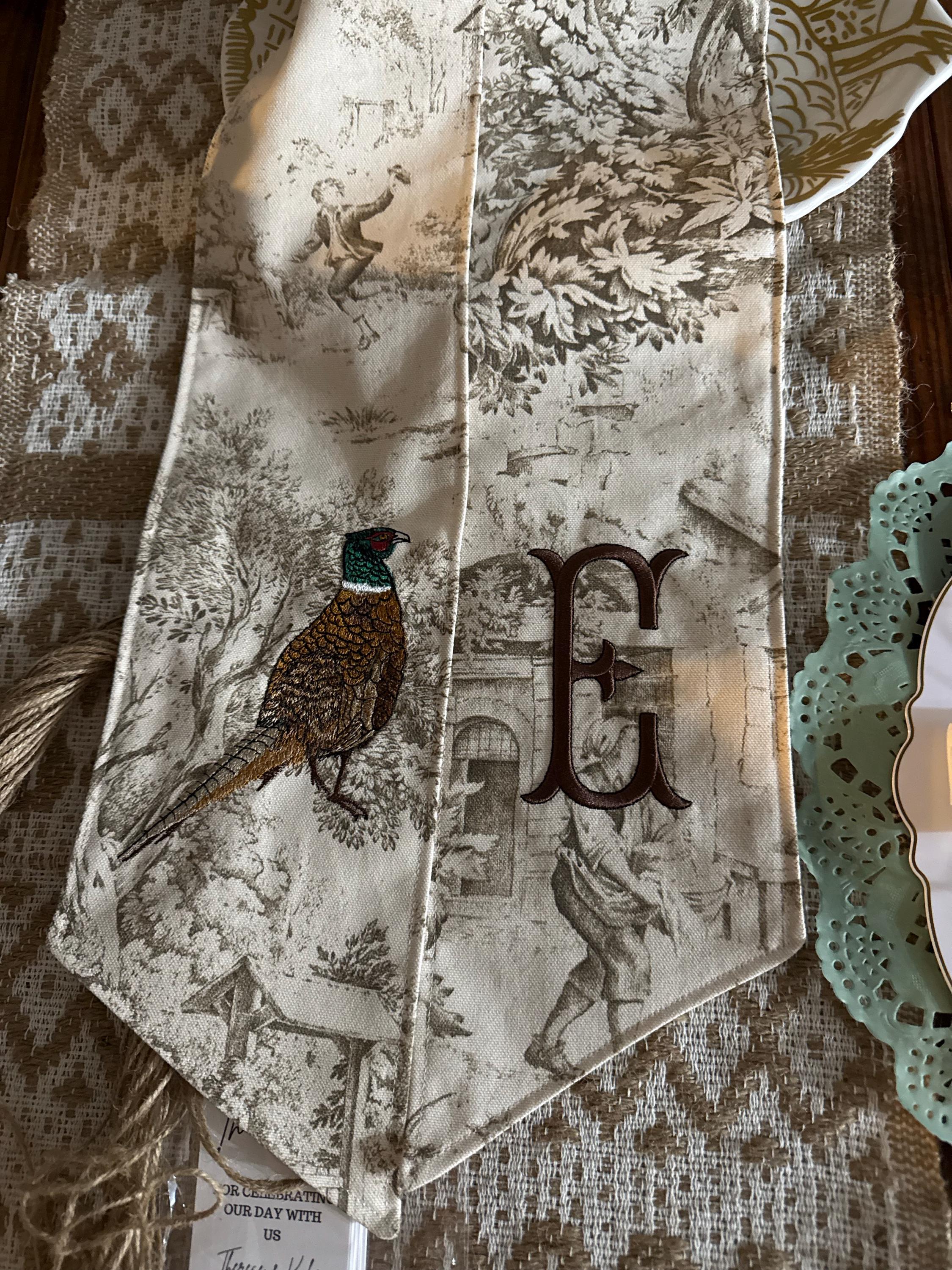 This sash also pairs beautifully with many holiday or chinoiserie towels in my shop. I have other colored (green, gold, black, red, pink) toile sashes and embroidered linen sashes, here: