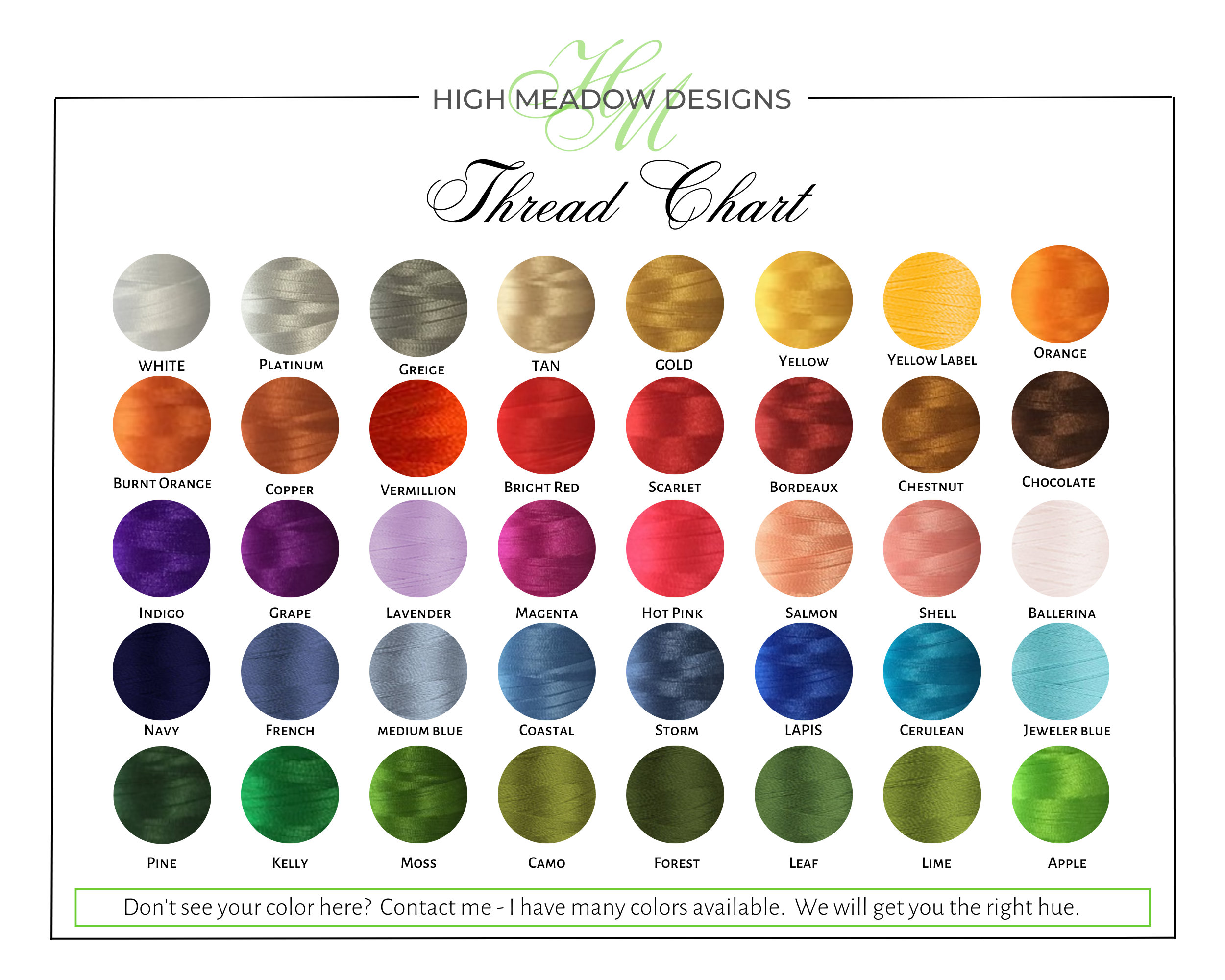 *NOTE: If you do not choose a color for your monogram, I will stitch it with chocolate brown thread as in the cover photo.
