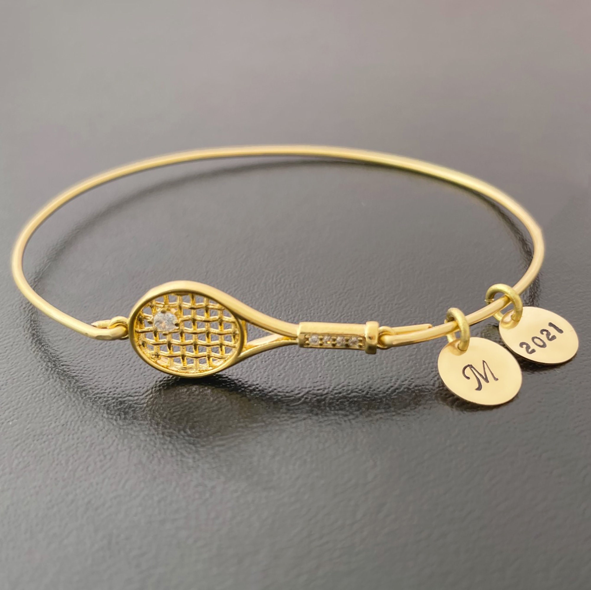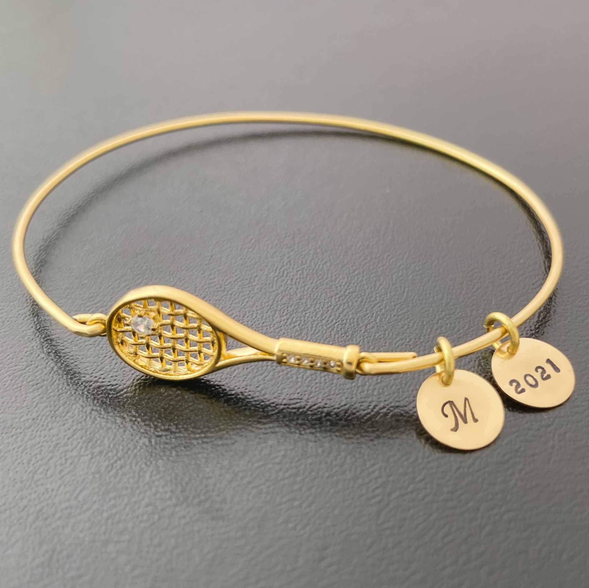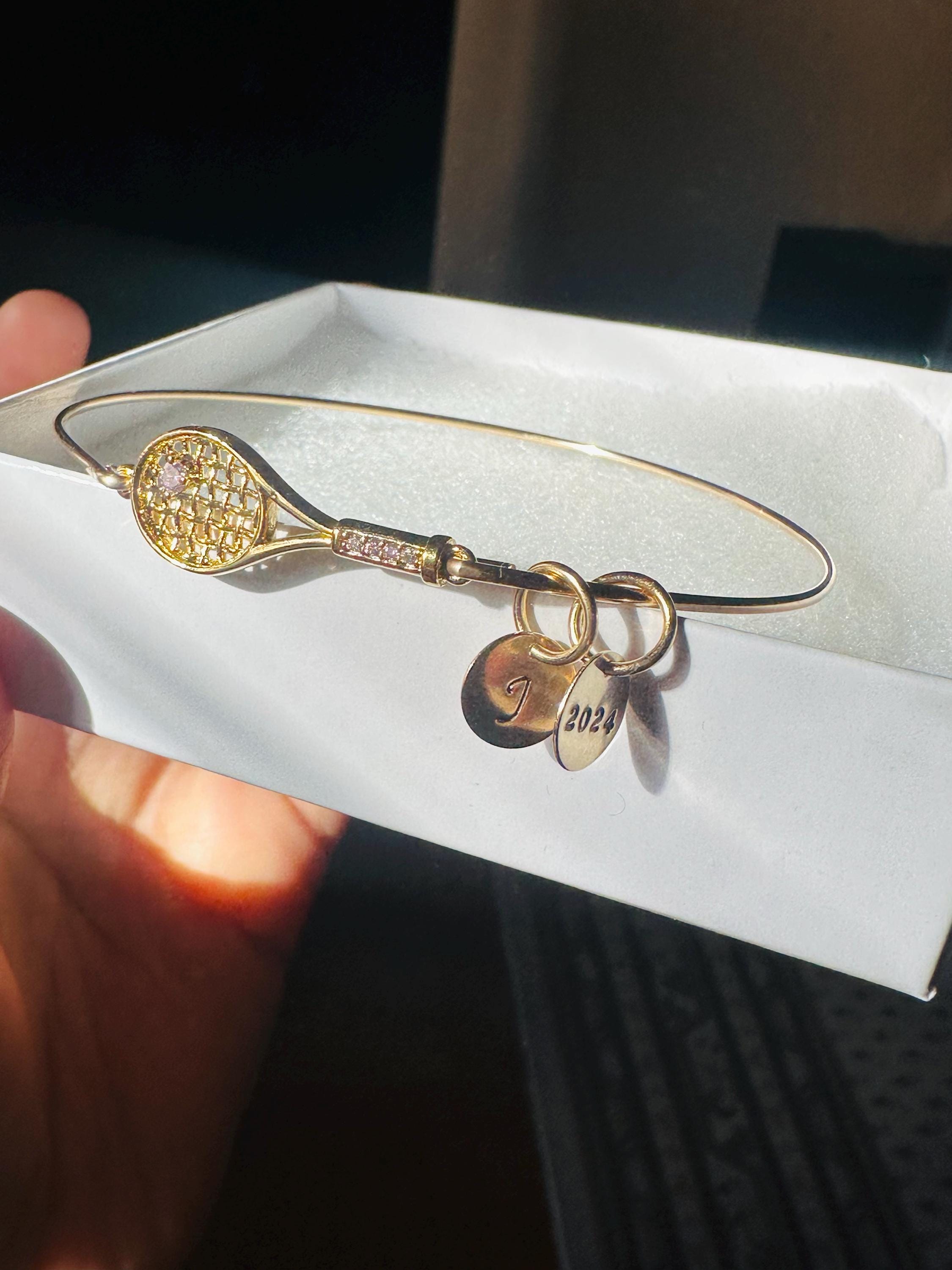 Tennis Racket Bracelet - Personalized Tennis Jewelry - Personalized Tennis Pendant Bracelet - Optional pendants can be added from the drop-down menu, such as letter pendants or team year/graduation year pendants.