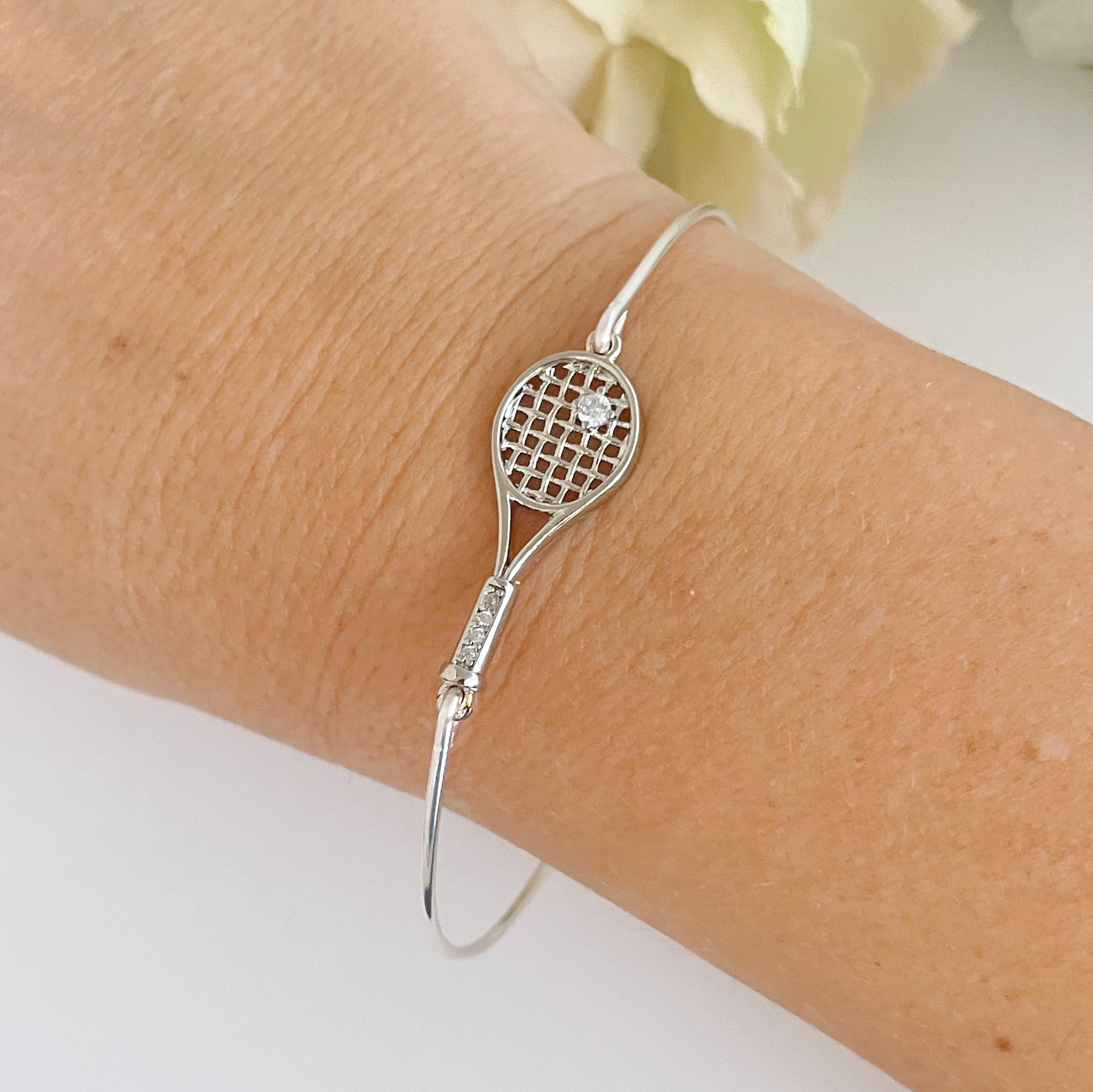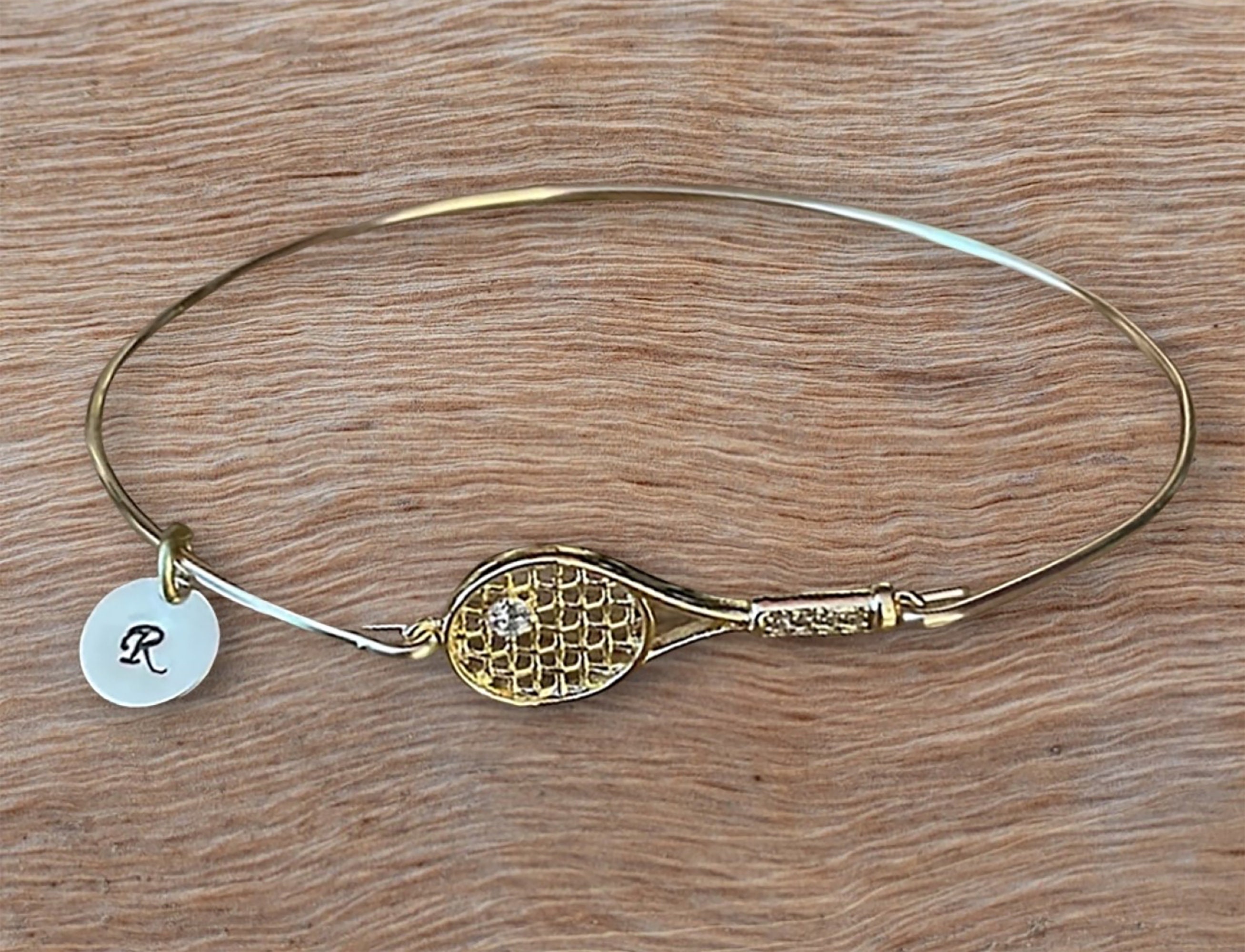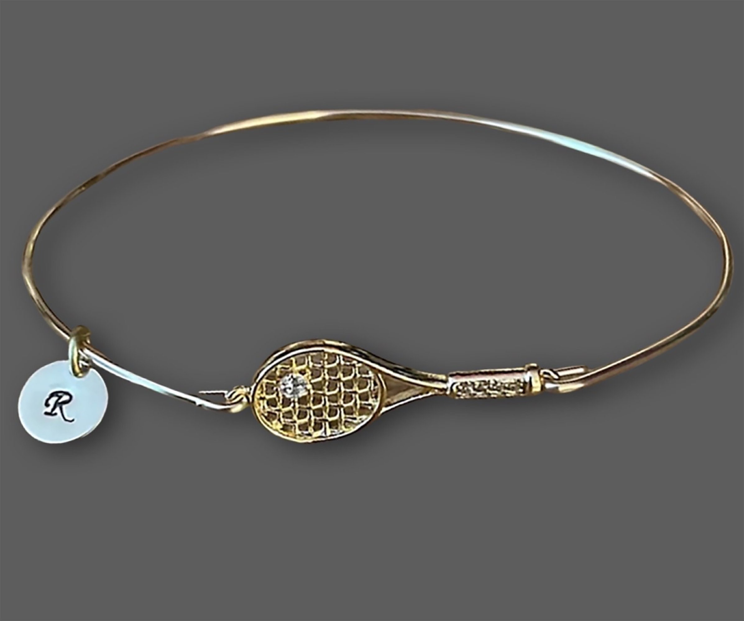 Tennis Racket Bracelet - Personalized Tennis Jewelry - Personalized Tennis Pendant Bracelet - Optional pendants can be added from the drop-down menu, such as letter pendants or team year/graduation year pendants.
