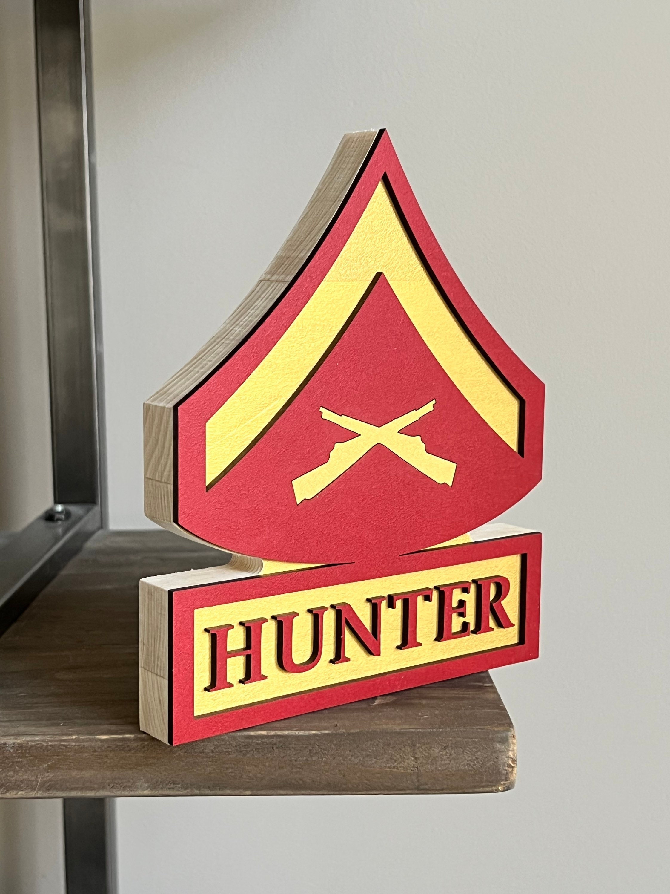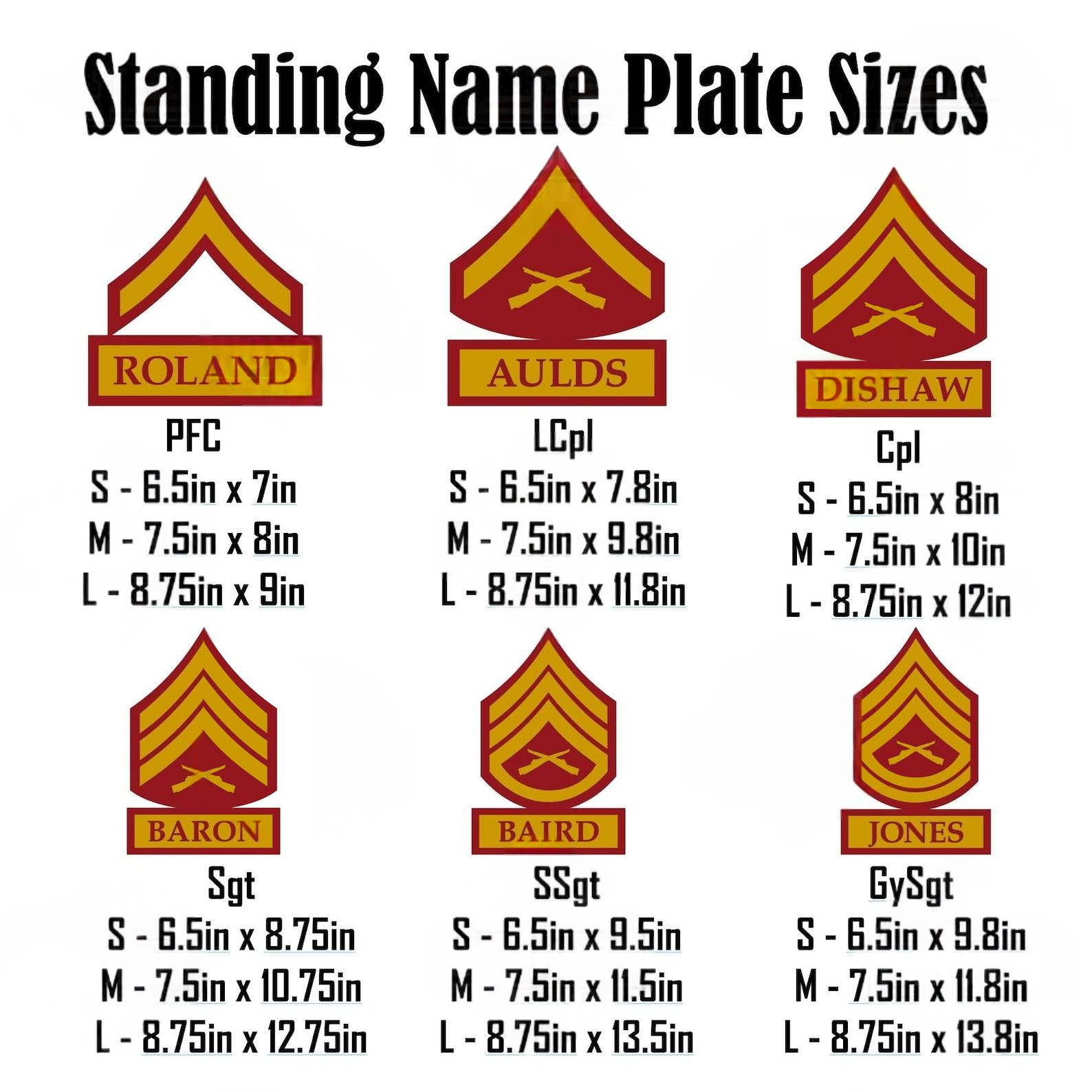 This USMC Rank Name Plate is made to order with your choice of Marine Rank and Name.