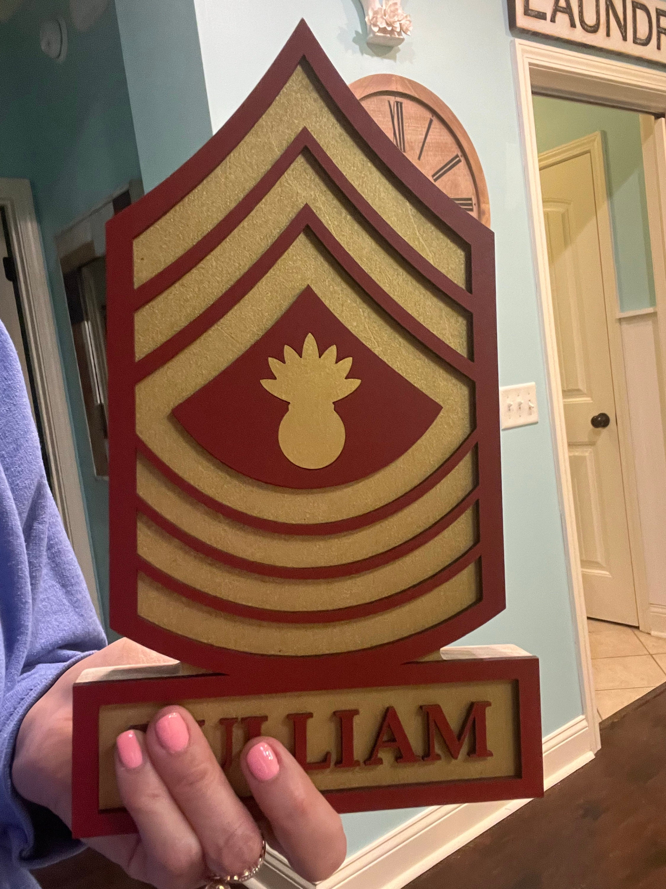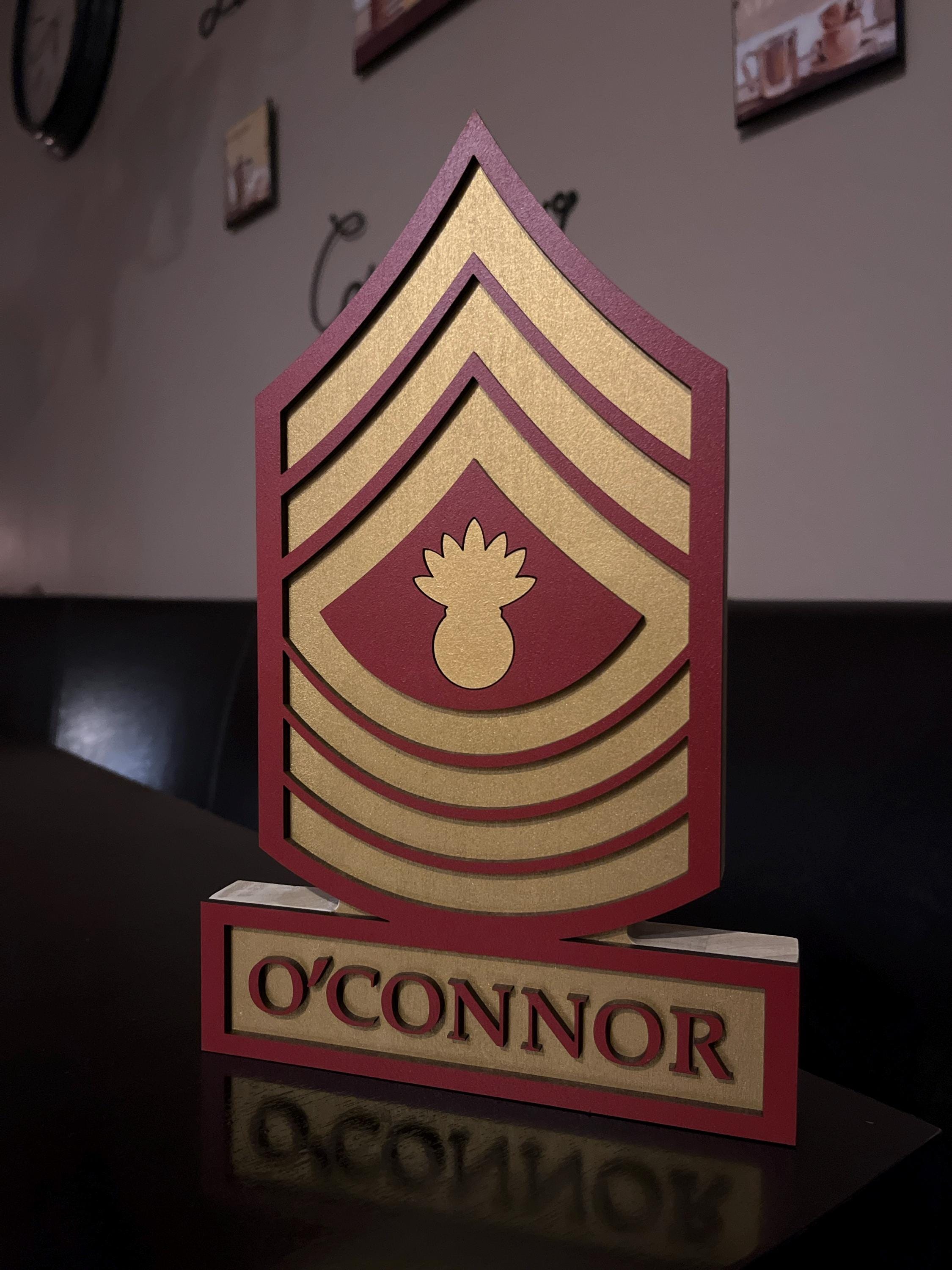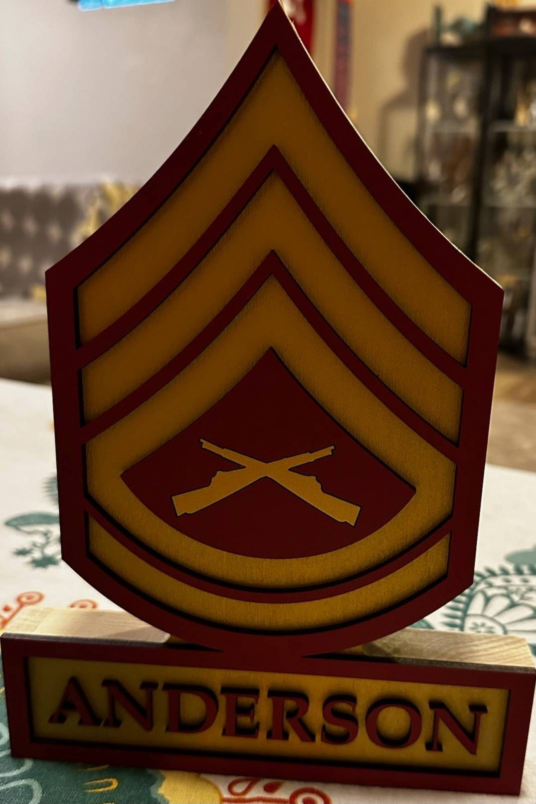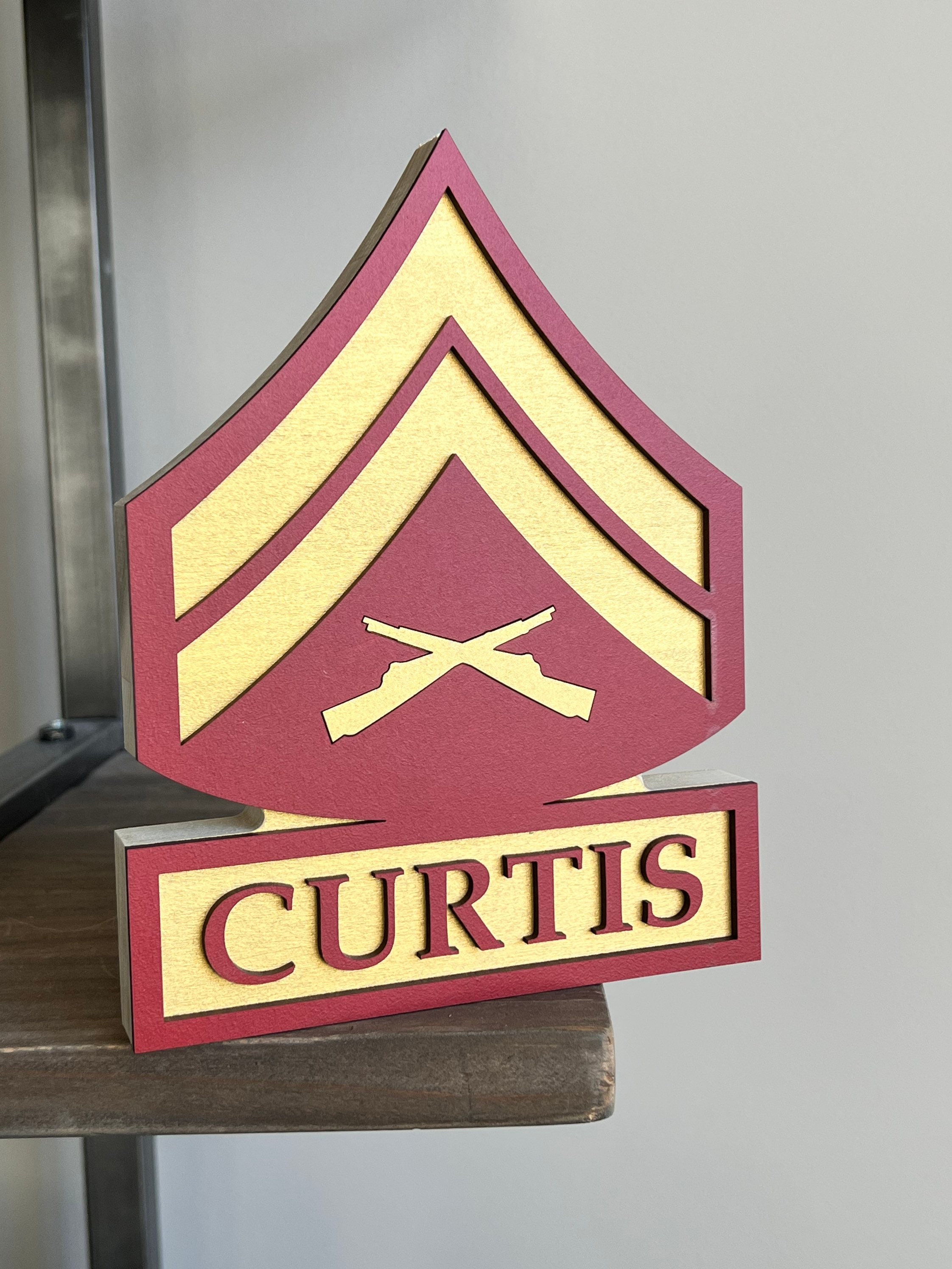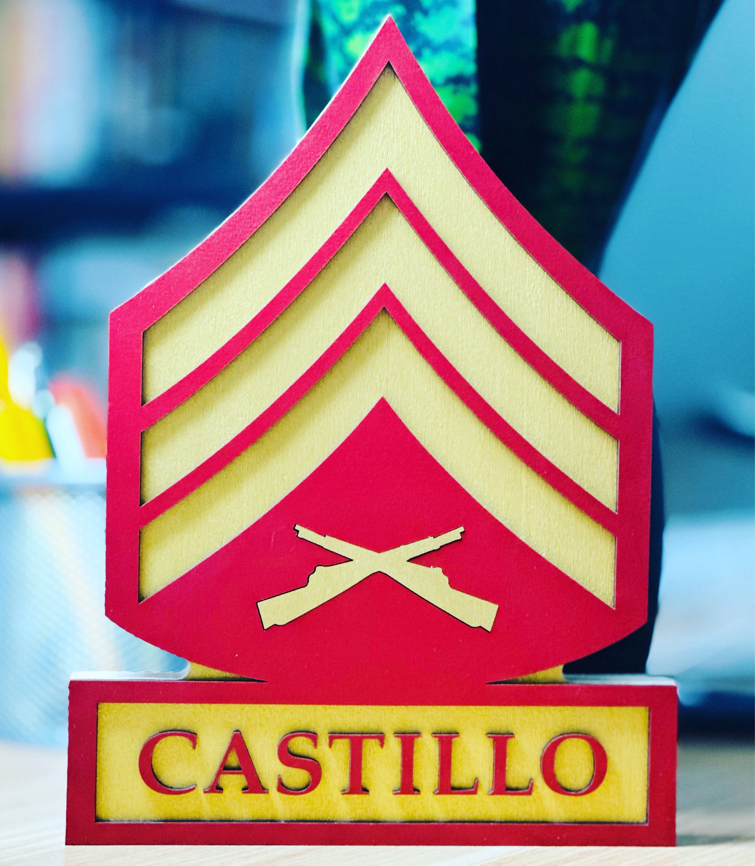 We LOVE making these. They make a wonderful addition to any Marine Corp. Enlisted or Officer Desk Space.