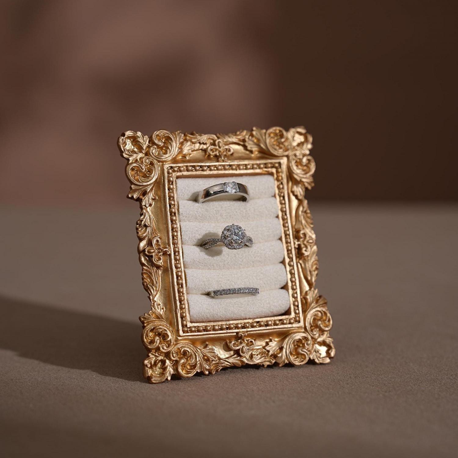 Premium Craftsmanship: Gold-painted resin frame, soft suede lining, and a durable brass stand.